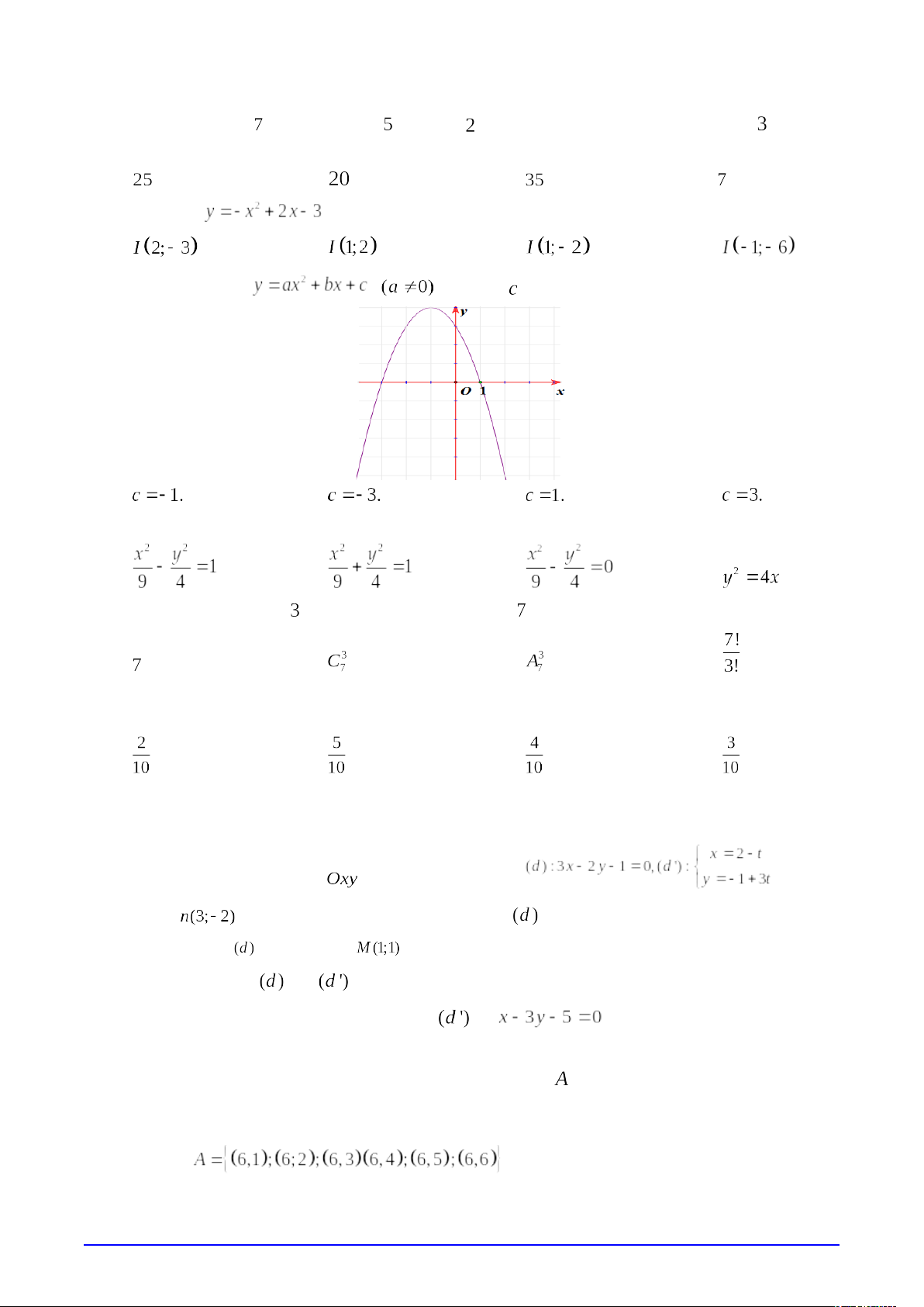 Câu 6. Cho đồ thị của hàm số bậc hai như hình vẽ: