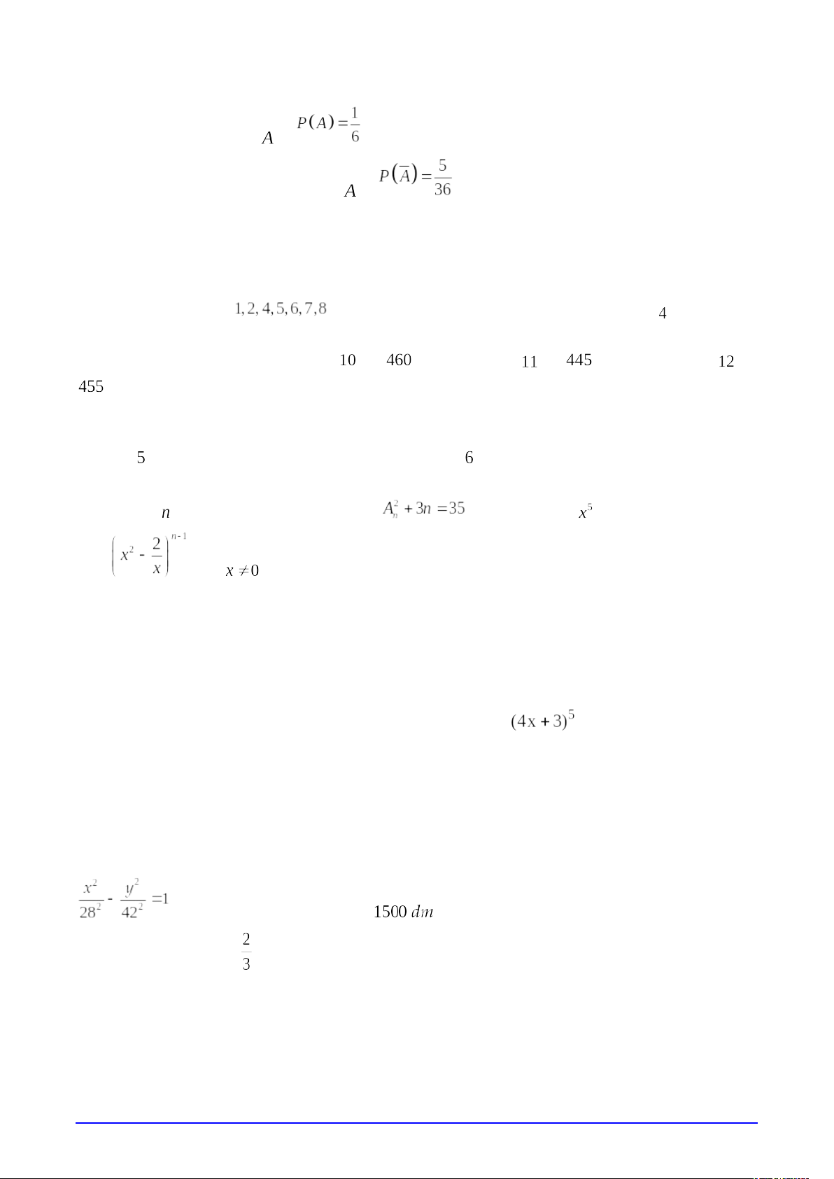 Câu 2. Gieo một con xúc xắc cân đối đồng chất hai lần. Gọi là biến cố: “ Lần thứ hai xuất hiện