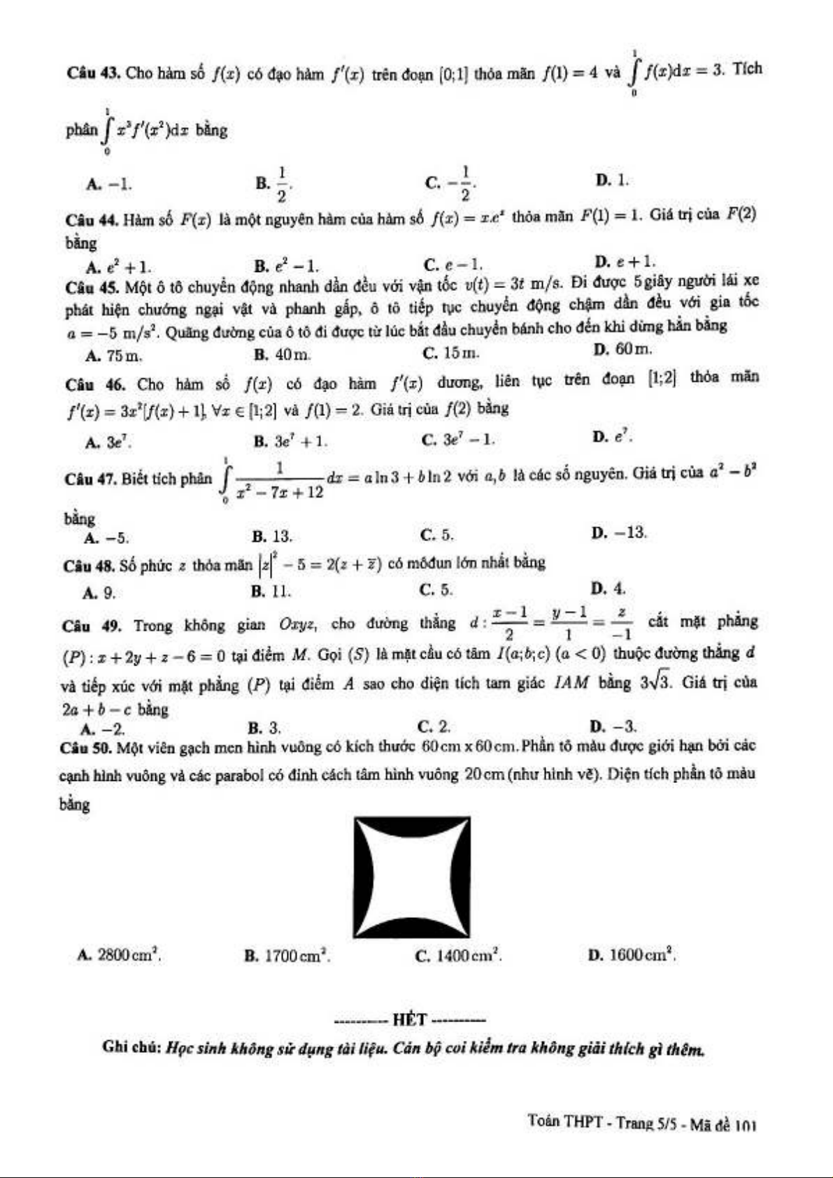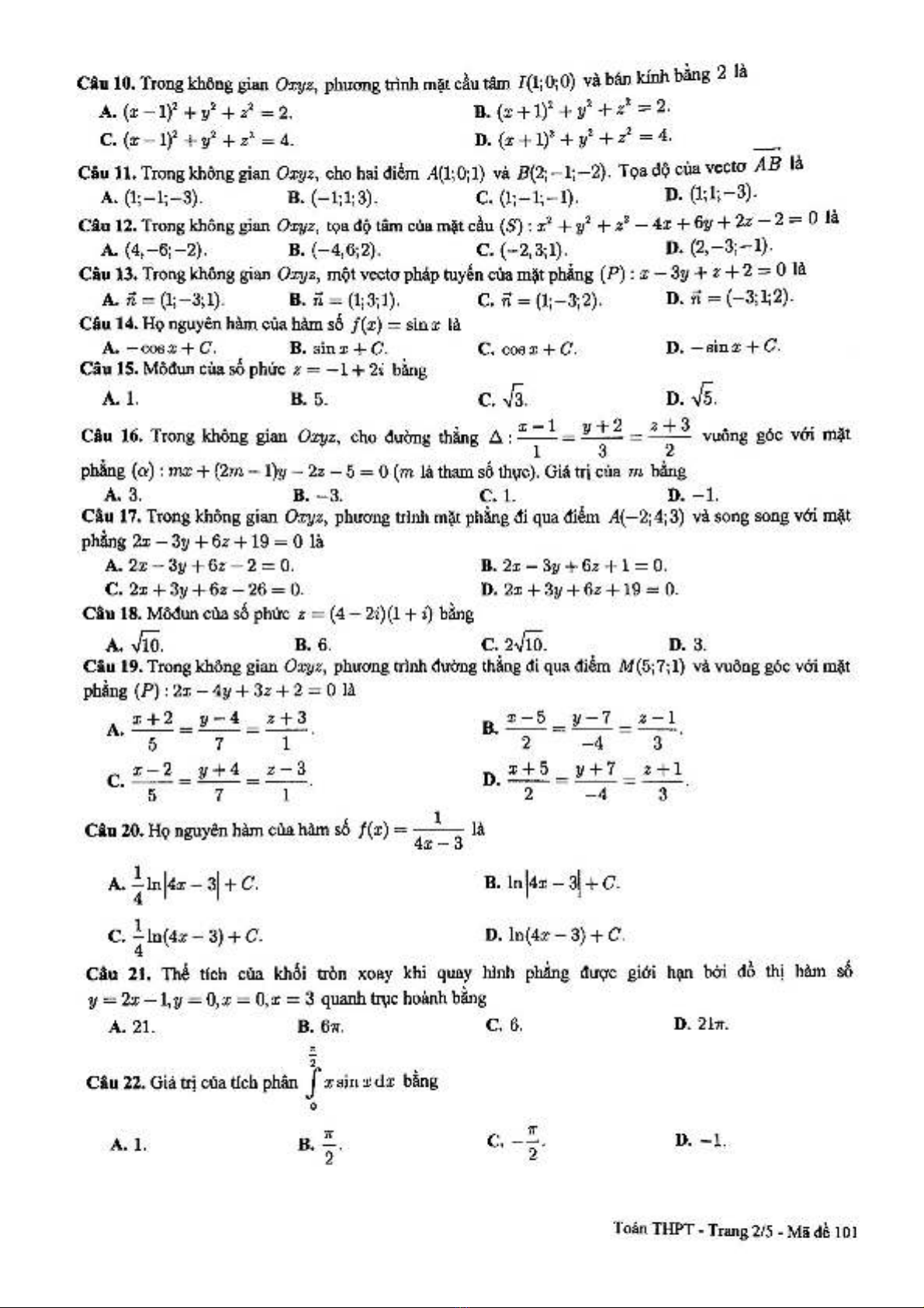 Nhằm giúp các em học sinh có thêm tài liệu ôn tập kiến thức, kĩ năng cơ bản, và biết cách vận dụng giải các bài tập một cách nhanh nhất và chính xác. Hãy tham khảo Đề thi học kì 2 môn Toán lớp 12 năm 2020-2021 có đáp án - Sở GD&ĐT thành phố Cần Thơ để tích lũy kinh nghiệm giải đề các em nhé!