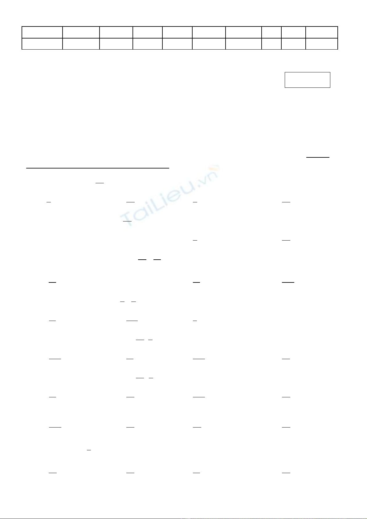 (H c sinh không đc s d ng máy tính c m tay)ọ ượ ử ụ ầ