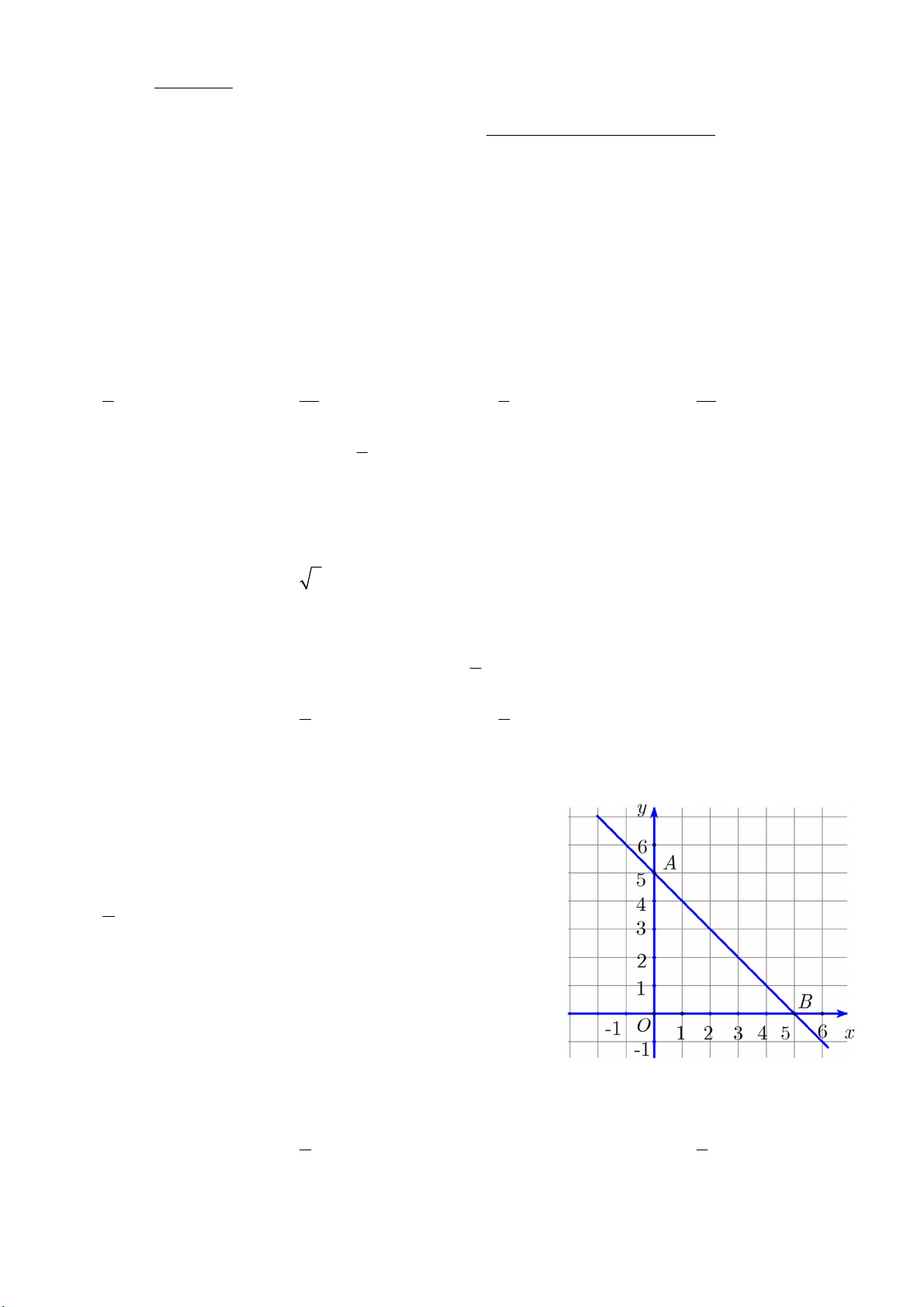 Câu 6. Hệ số góc của đường thẳng 1