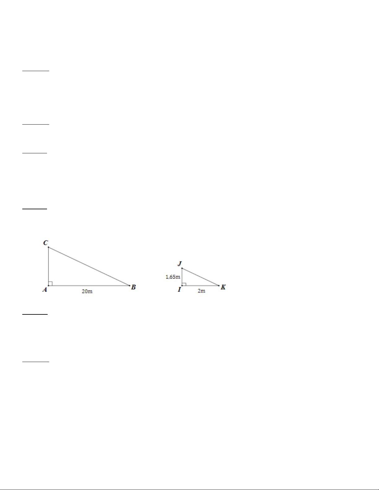 điểm đó, một cột sắt (IJ) cao 1,65m cắm vuông góc với mặt đất có bóng (IK) dài 2 m. Tính
