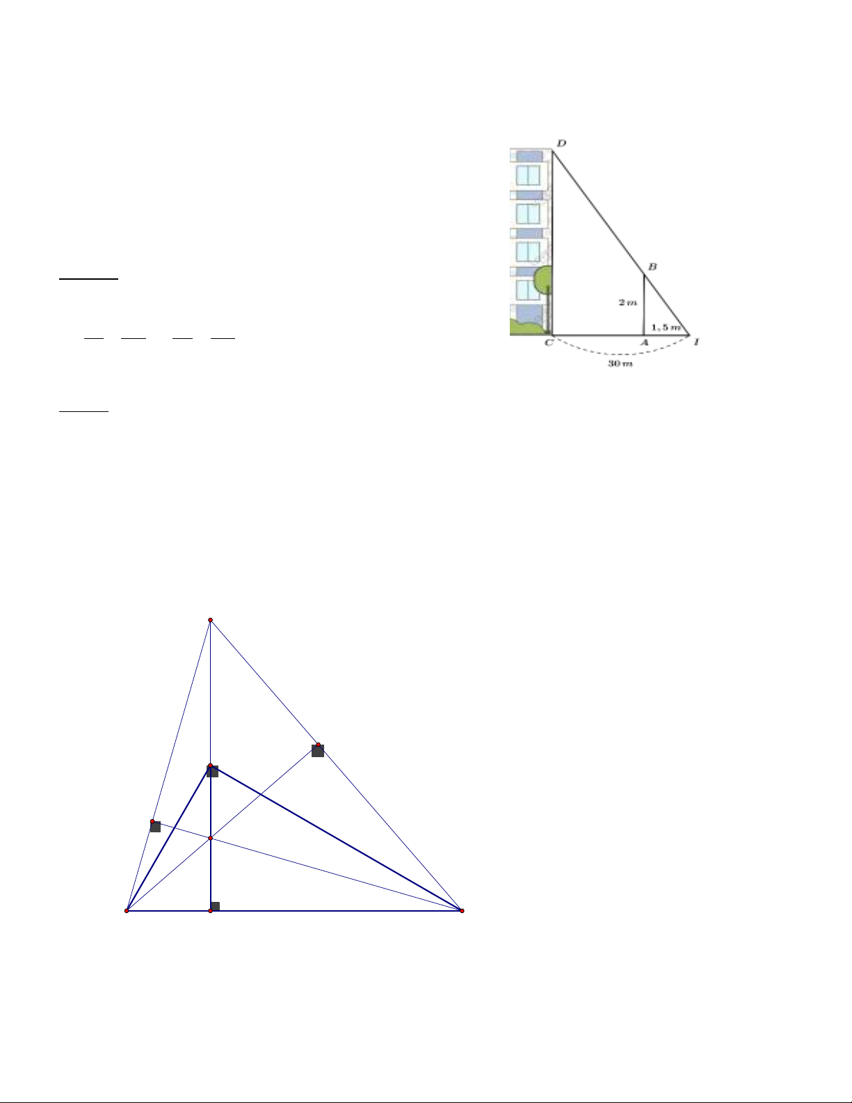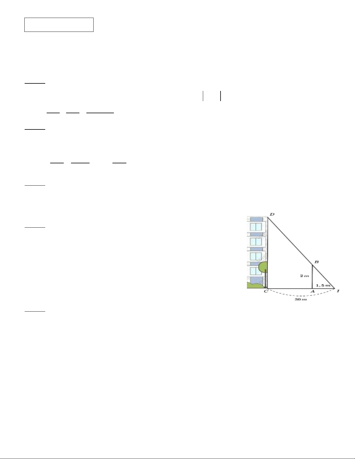 Bài 4) (1 điểm) Để đo chiều cao của một tòa nhà bằng ánh nắng