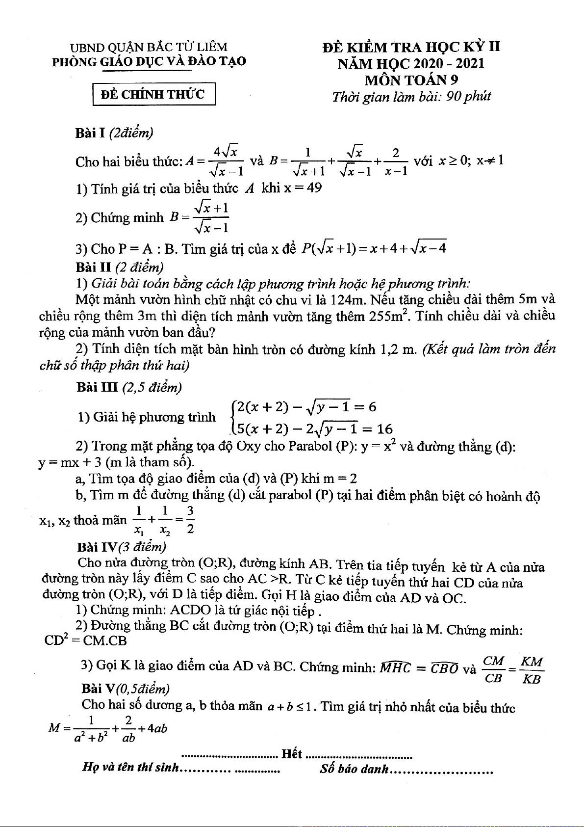 ĐỀ KIỂM TRA CHẤT LƯỢNG HỌC KÌ II