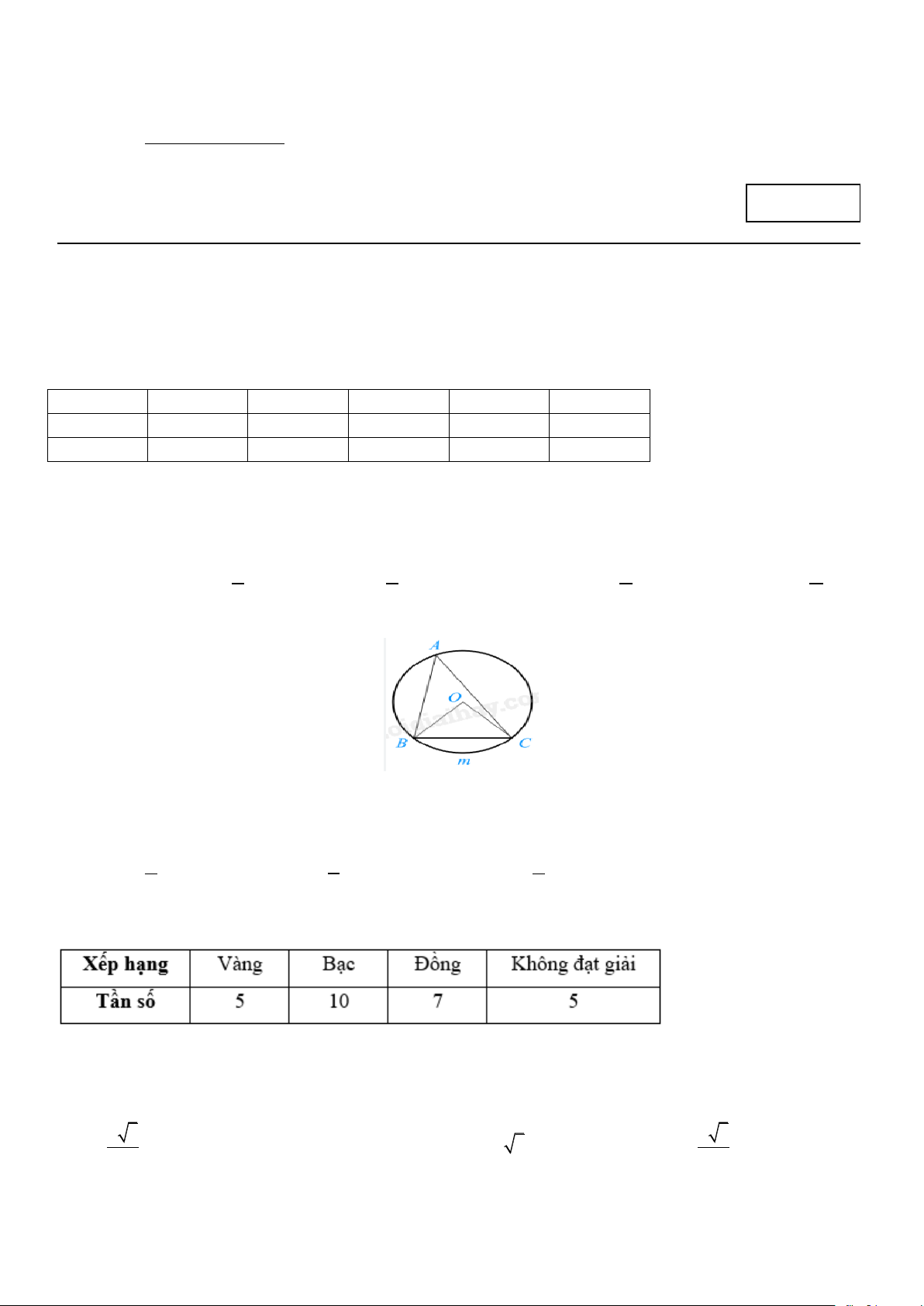 Câu 6: Kết quả của 24 học sinh Quận A tham gia Cuộc thi Olympic cấp Thành phố được thống kê