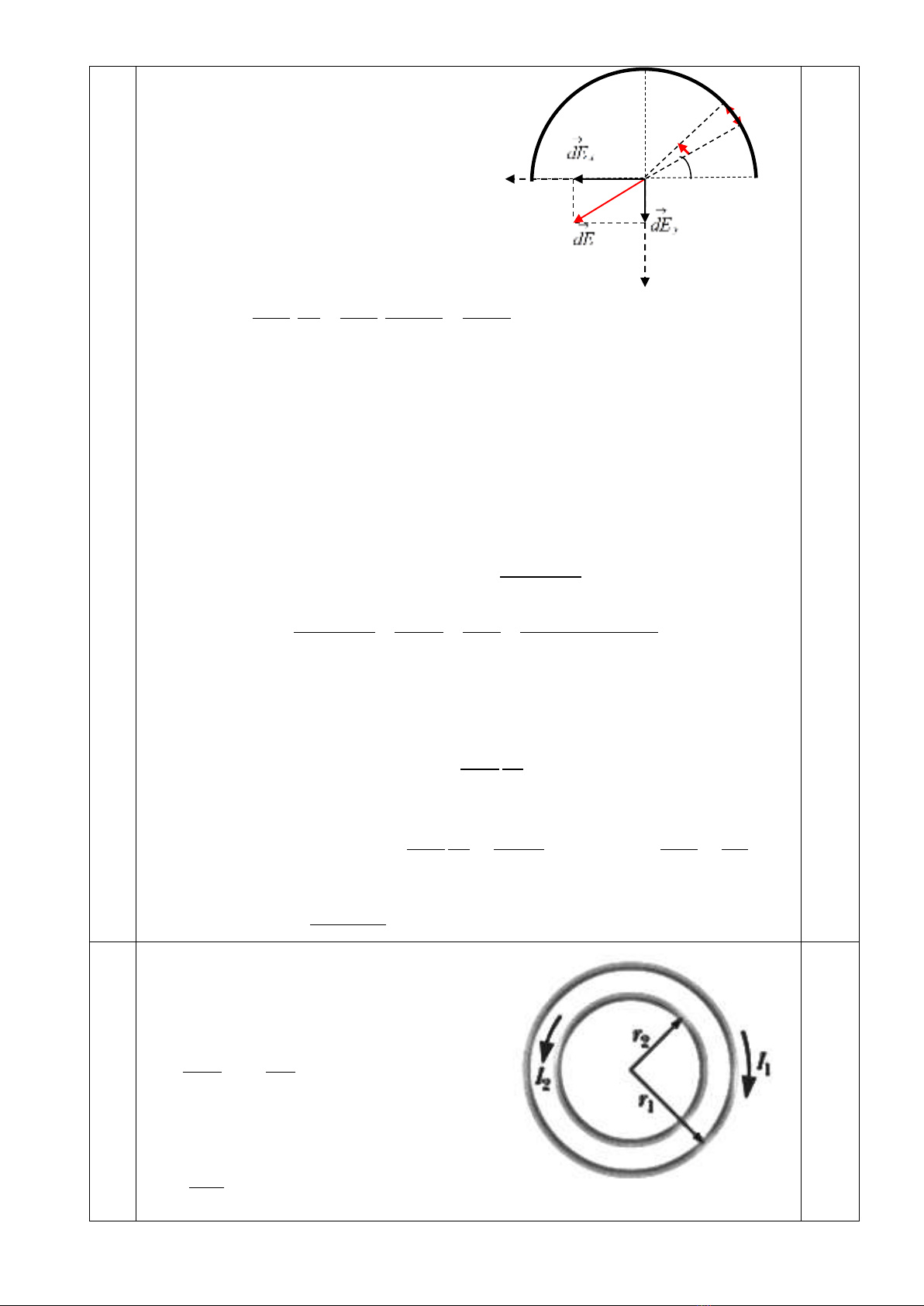 thành phần đối xứng nằm trên nửa đường tròn gây ra 1 điện trường cùng độ lớn nhưng