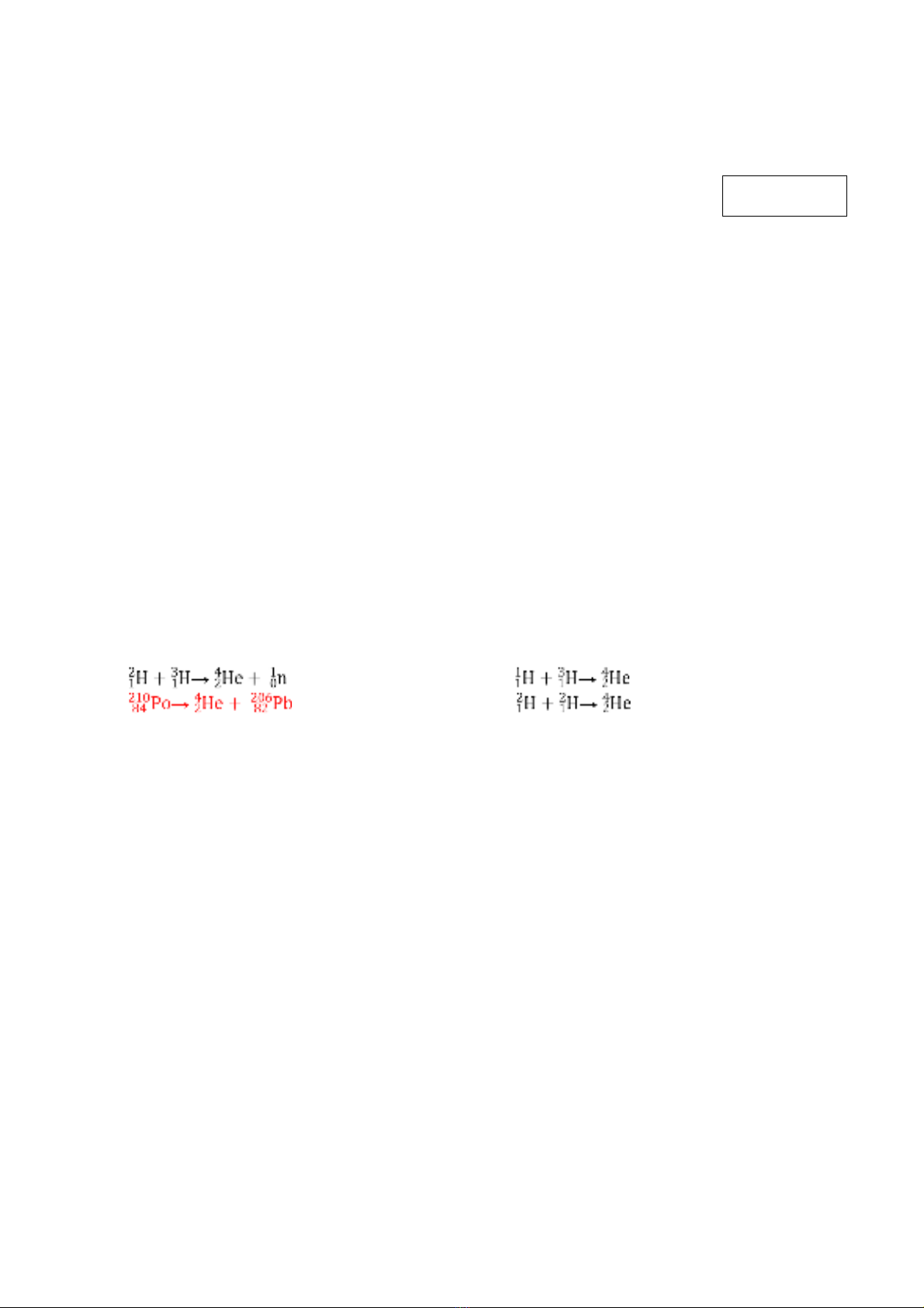 Câu 4: Phản ứng hạt nhân nào sau đây không phải là phản ứng nhiệt hạch?