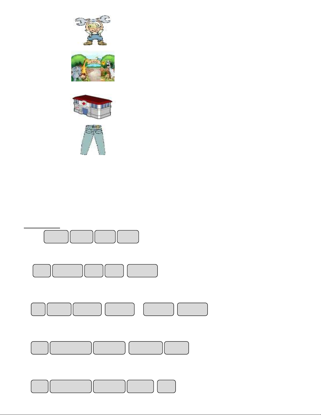 Question 1: Look at the pictures and the letters. Write the words. There is one