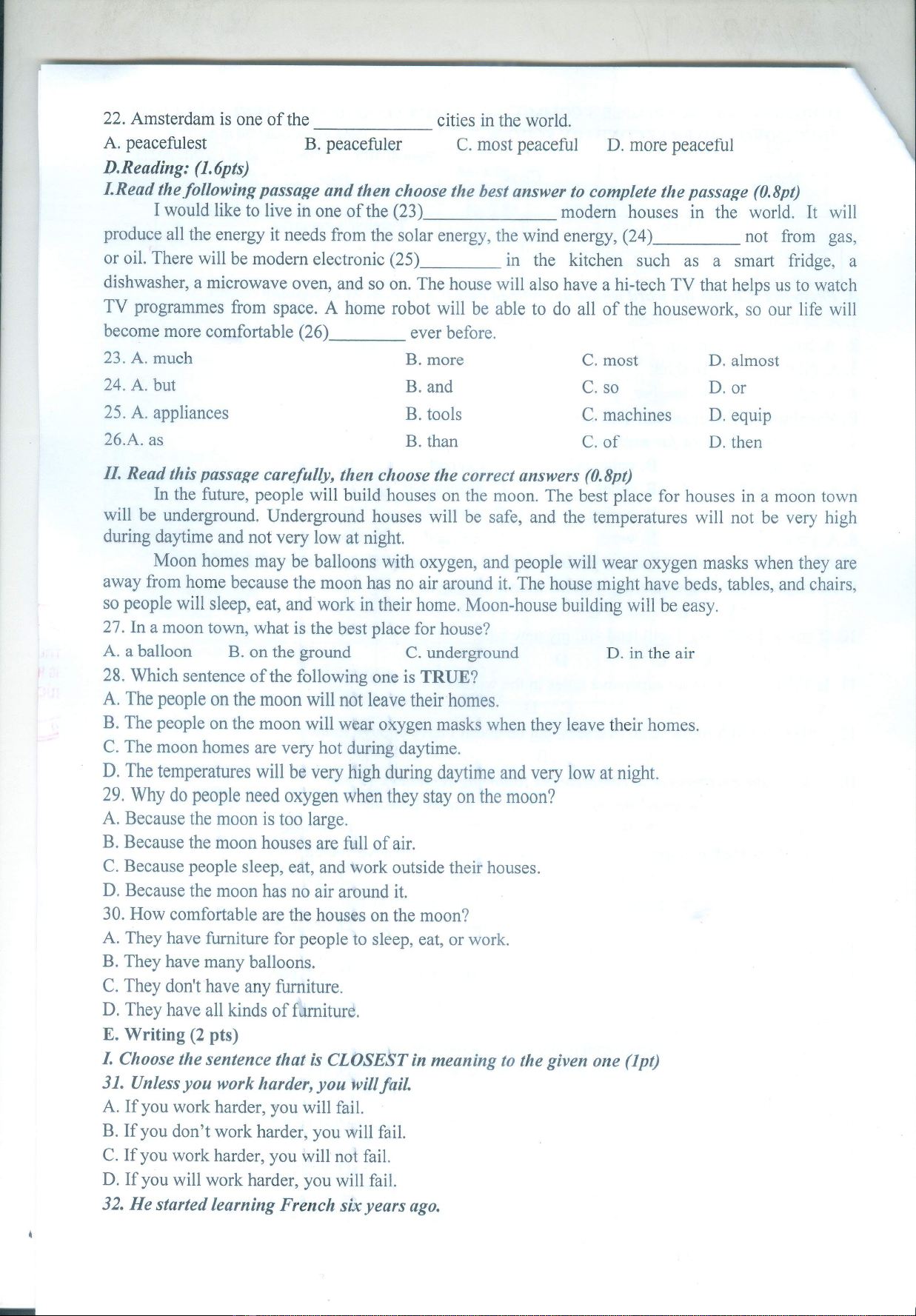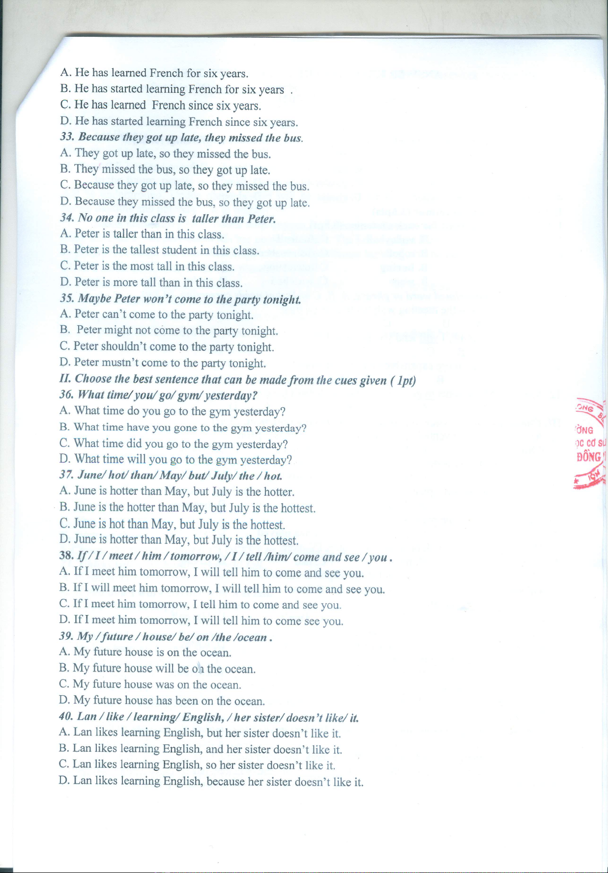 Đề thi học kì 2 môn Tiếng Anh lớp 6 năm 2020-2021 có đáp án - Trường THCS Phúc Đồng