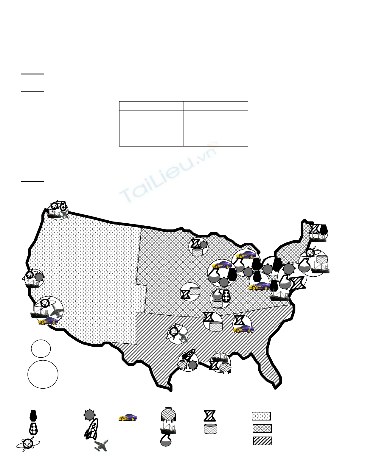 CÂU 3. Dựa vào lược đồ các trung tâm công nghiệp chính của Hoa Kì, em hãy điền các nội dung