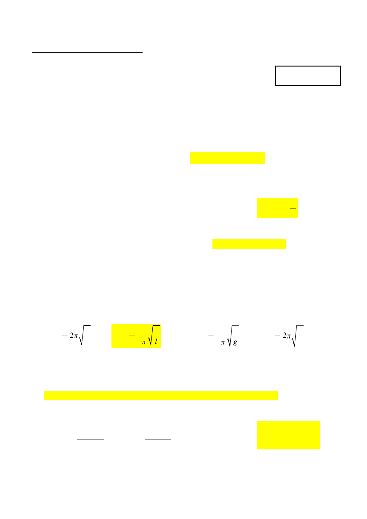 Câu 5: Khi con lắc đơn dao động điều hòa công thức tính tần số của nó là