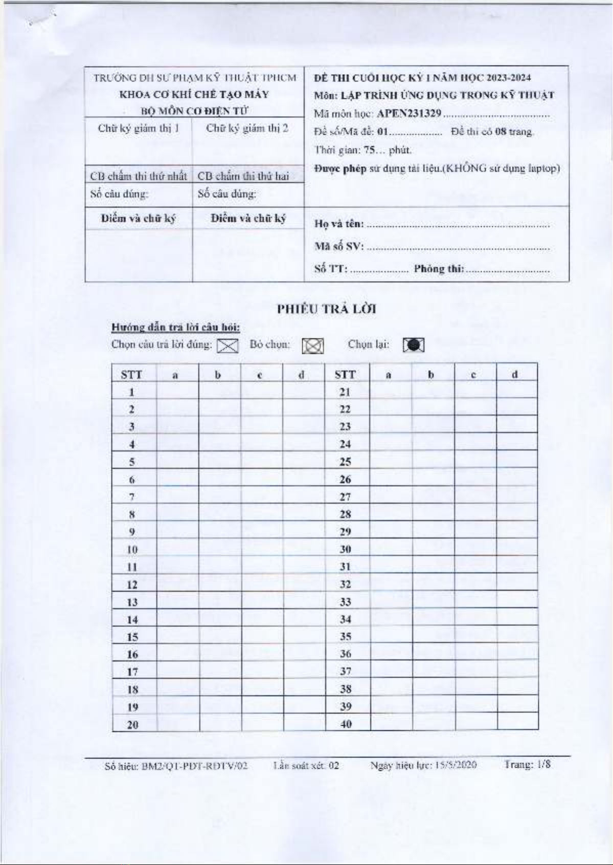 So hieu: BM2/QT-PDT-RDTV/02 Län sodt xet: 02 Ngäy hieu lue: 15/5/2020 Trang: 1/8