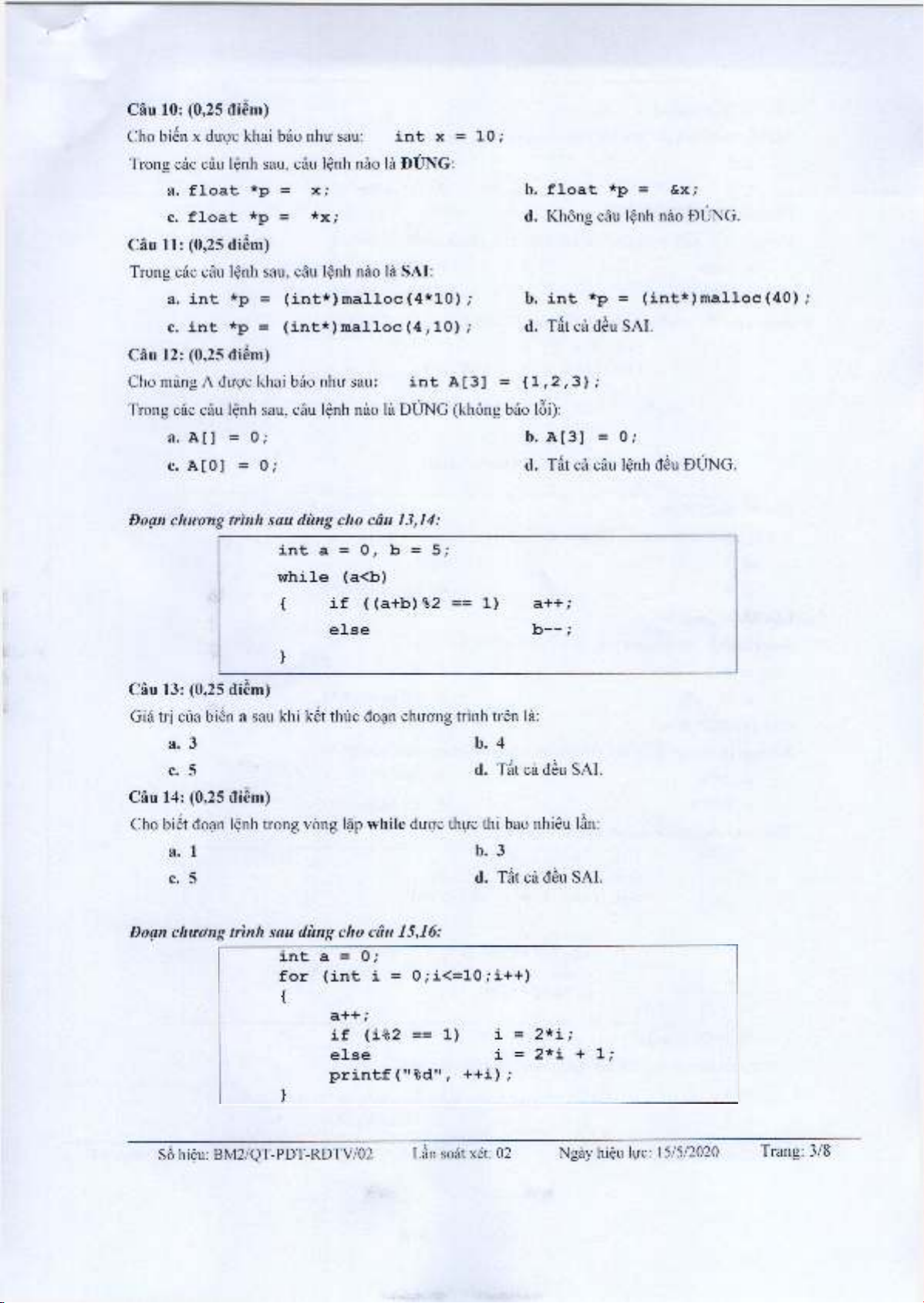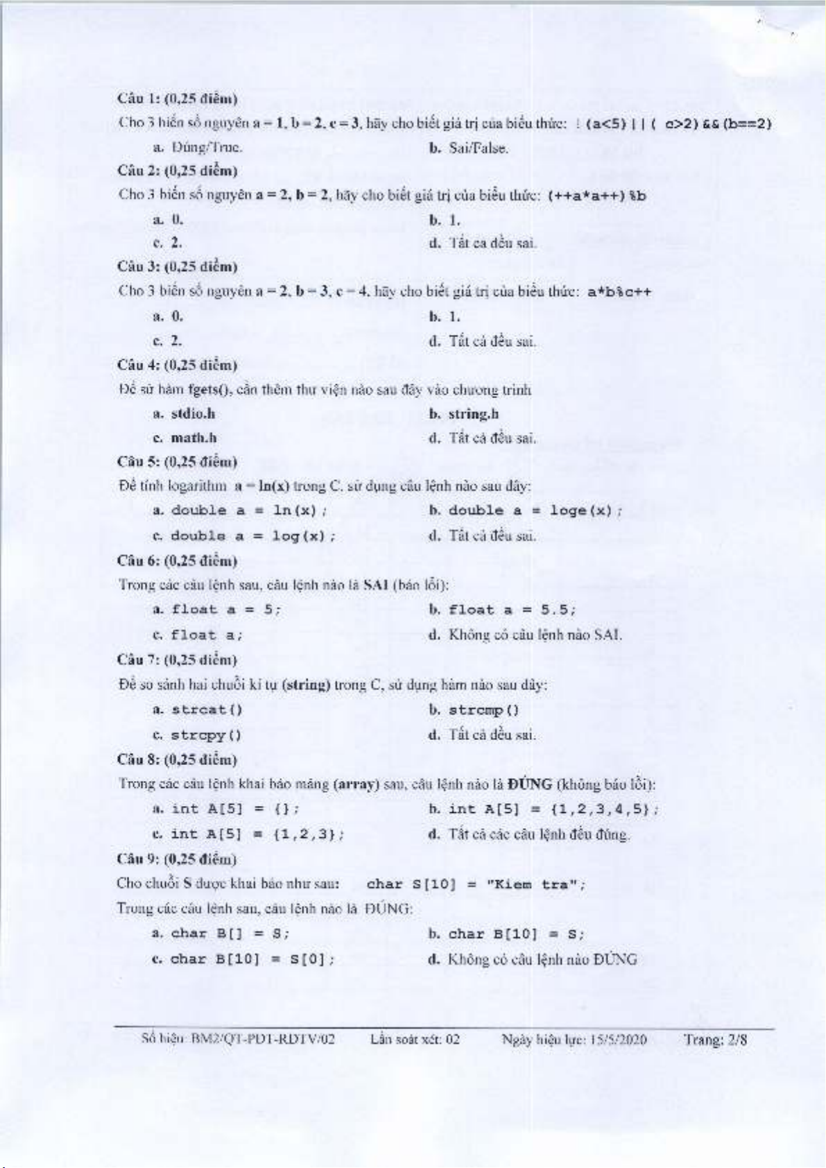 So hieu: BM2/QT-PDT-RDTV/02 Län soät xet: 02 Ngäyhieu Irre: 15/5/2020 Trang: 2/8