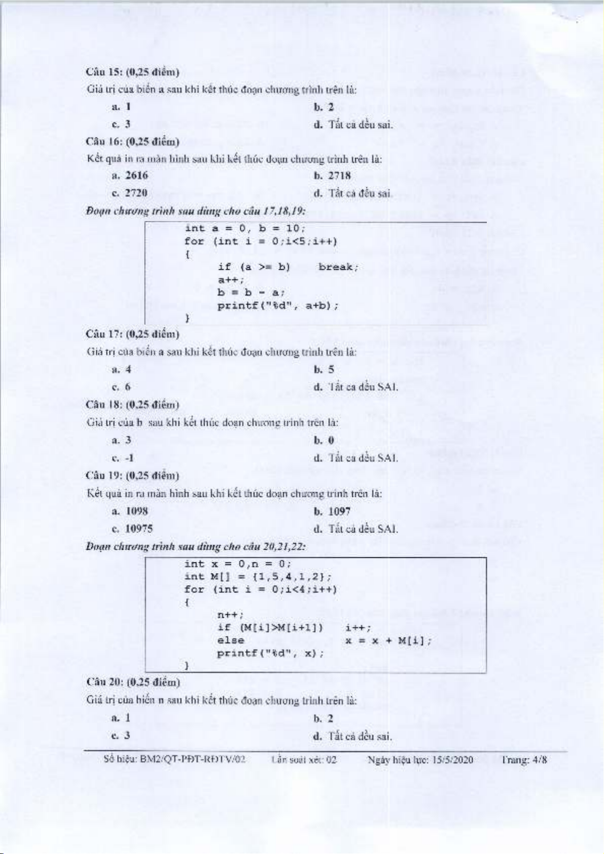 Sö hieu: BM2/QT-PDT-RDTV/02 Län soät xet: 02 Ngäy hieu luc: 15/5/2020 Trang: 4/8