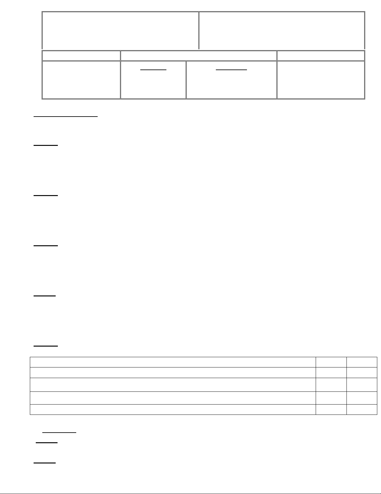 Từ câu 1 đến câu 4 mỗi đáp án đúng 0,5 điểm