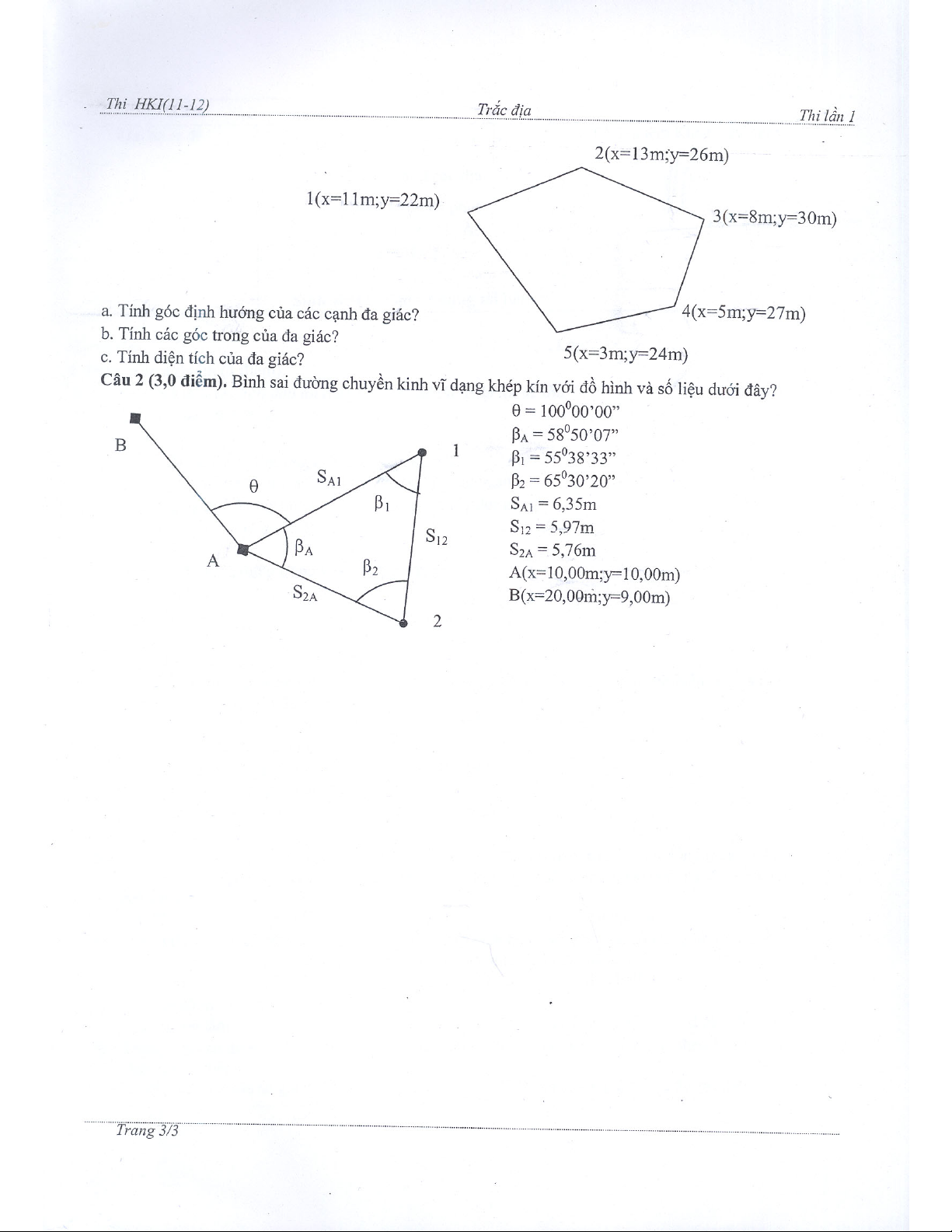 Đề thi Trắc địa
