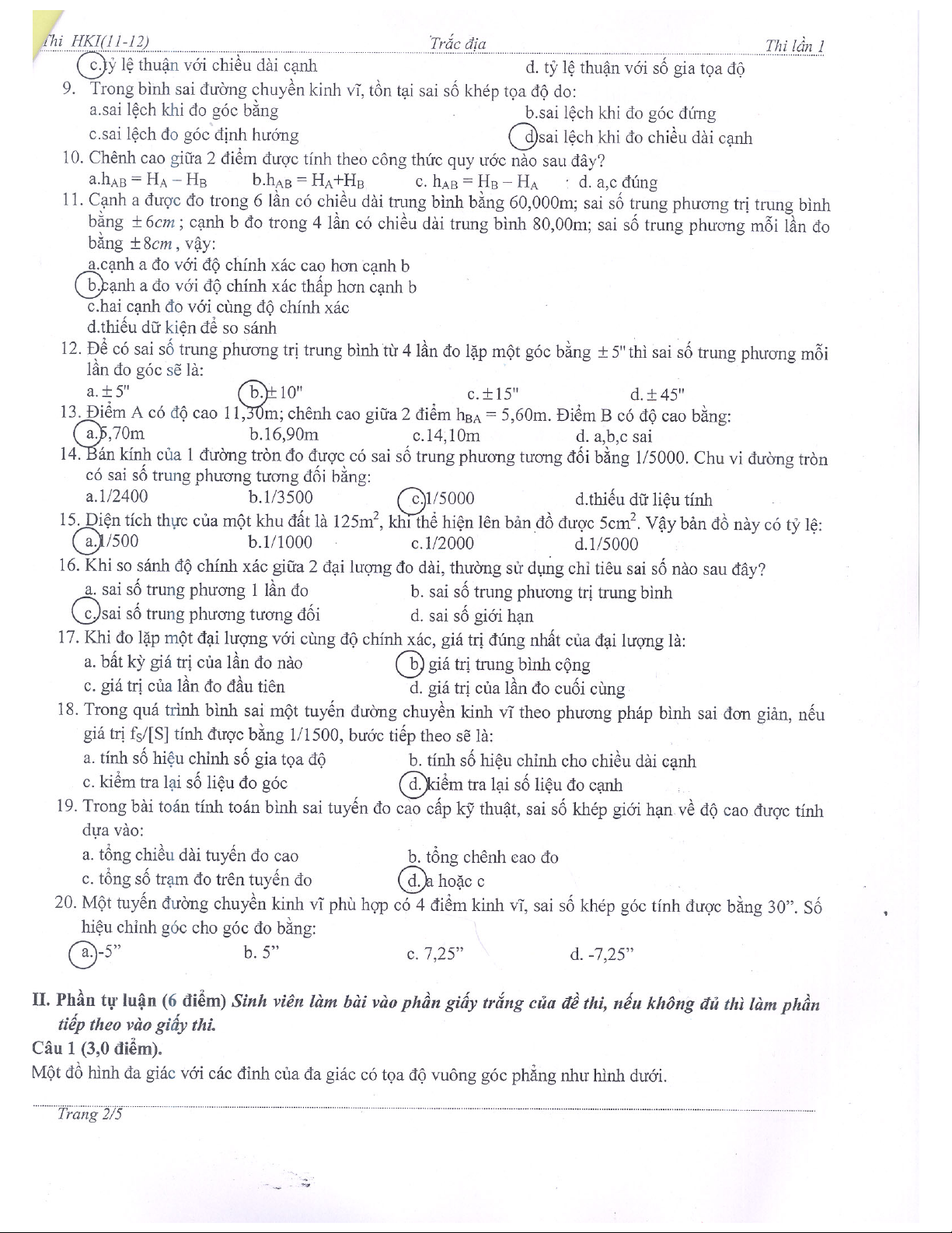 Tham khảo các câu hỏi trắc nghiệm "Đề thi học kỳ 1 môn Trắc địa" sẽ là tài liệu chất lượng giúp bạn định hướng ôn tập và nắm các kiến thức trọng tâm môn học giúp làm bài thi đạt điểm cao.