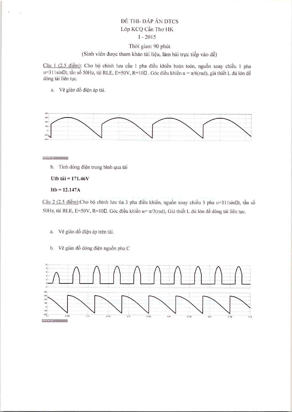 Đề thi học kỳ I năm học 2015 kèm đáp án môn Điện tử công suất - Lớp KCQ