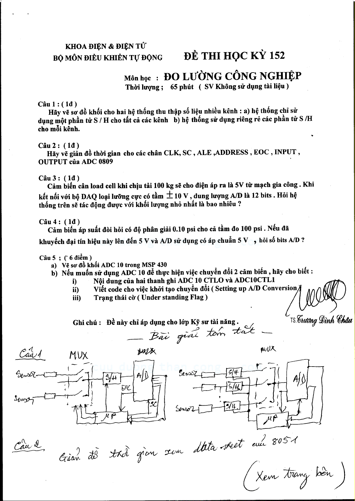 Đề thi học kỳ I môn Đo lường công nghiệp