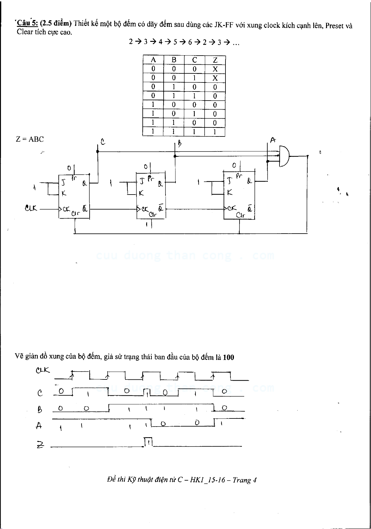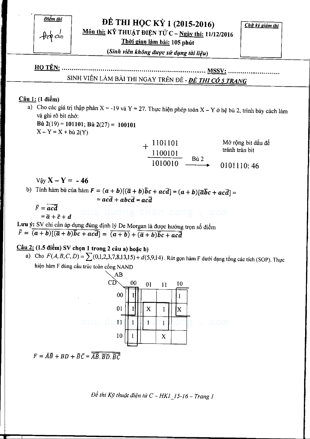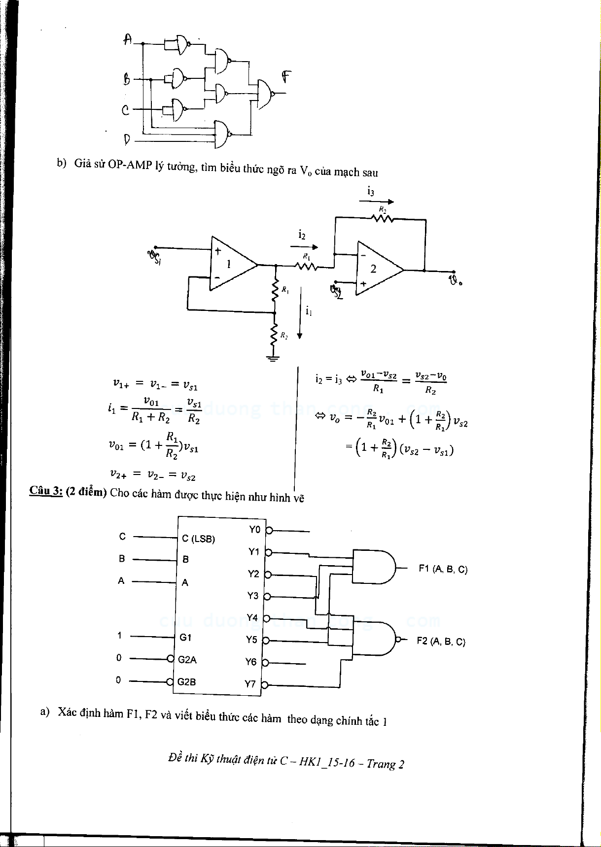 Đề thi học kỳ 1 năm 2015 - 2016 môn Kỹ thuật điện tử C