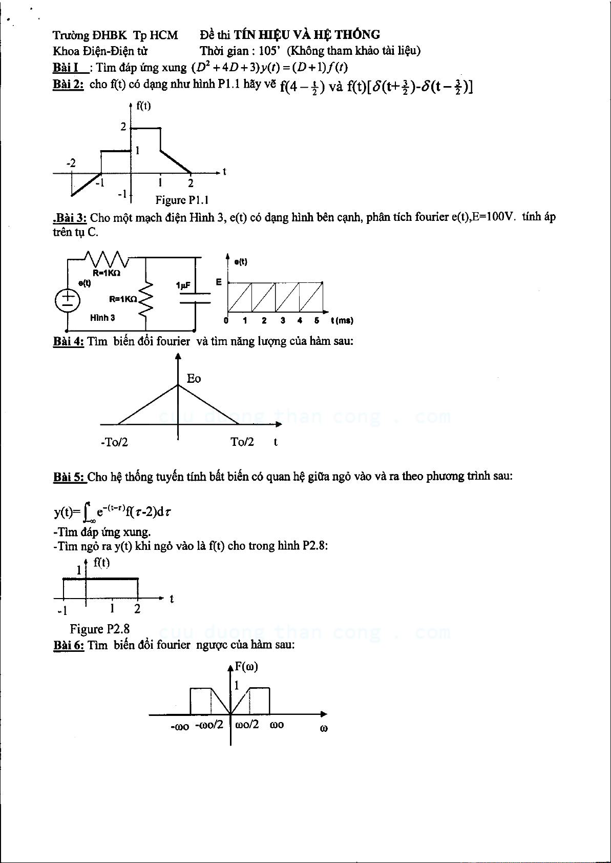 Đề thi học kỳ môn Tín hiệu và hệ thống
