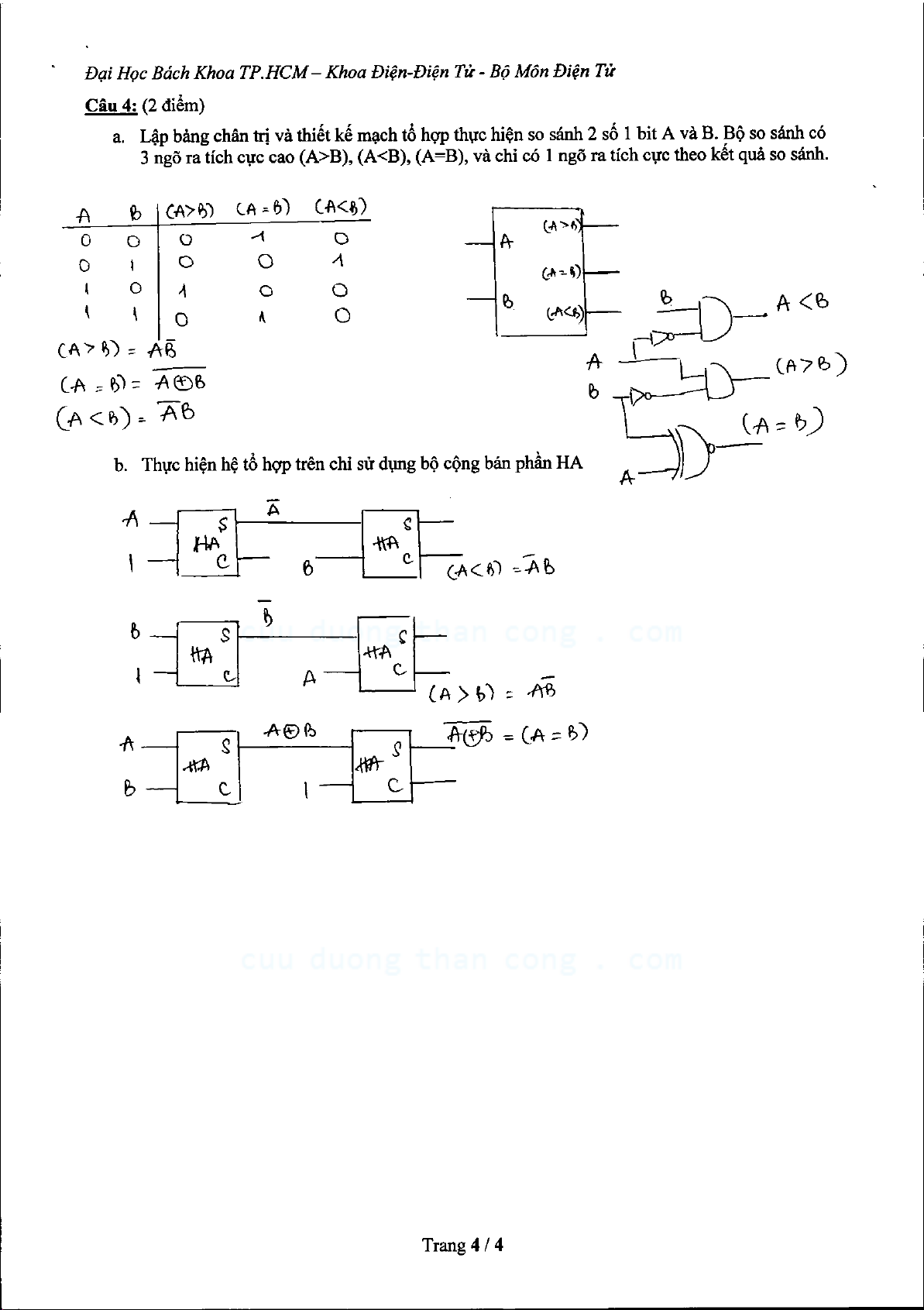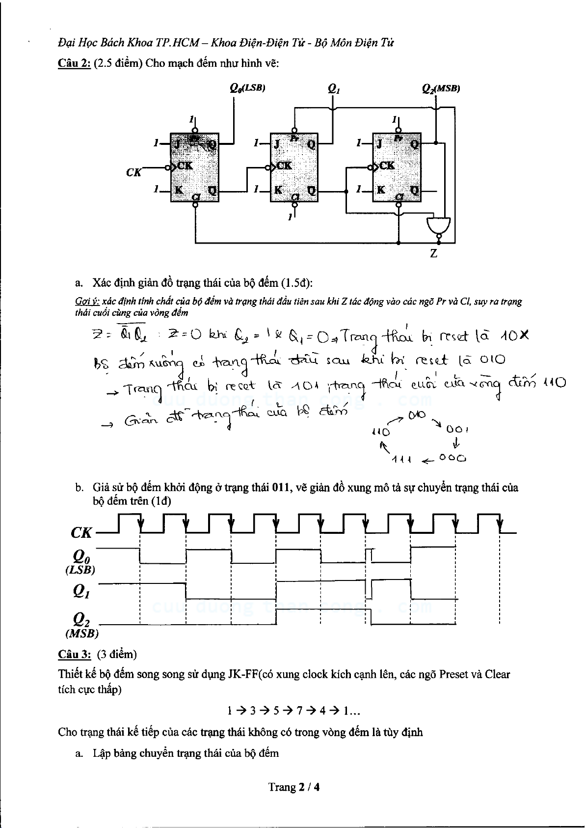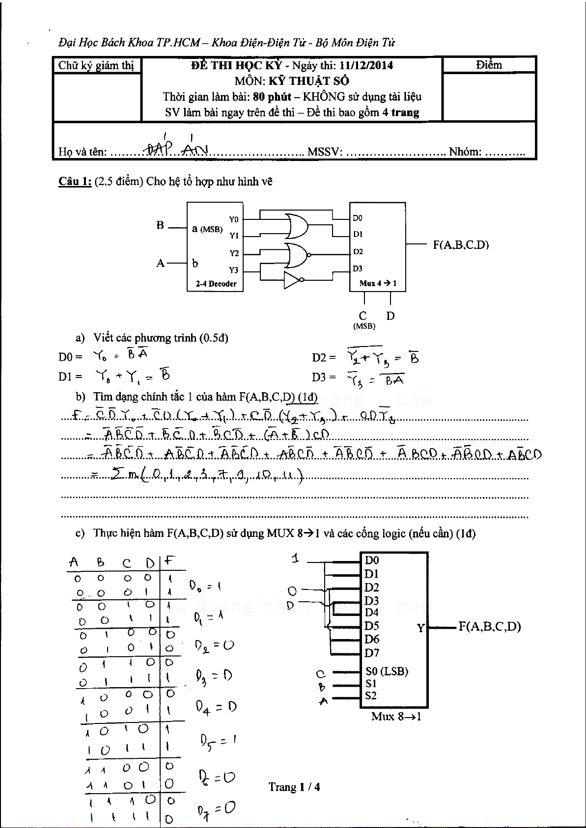 Đề thi học kỳ năm 2014 môn Kỹ thuật số