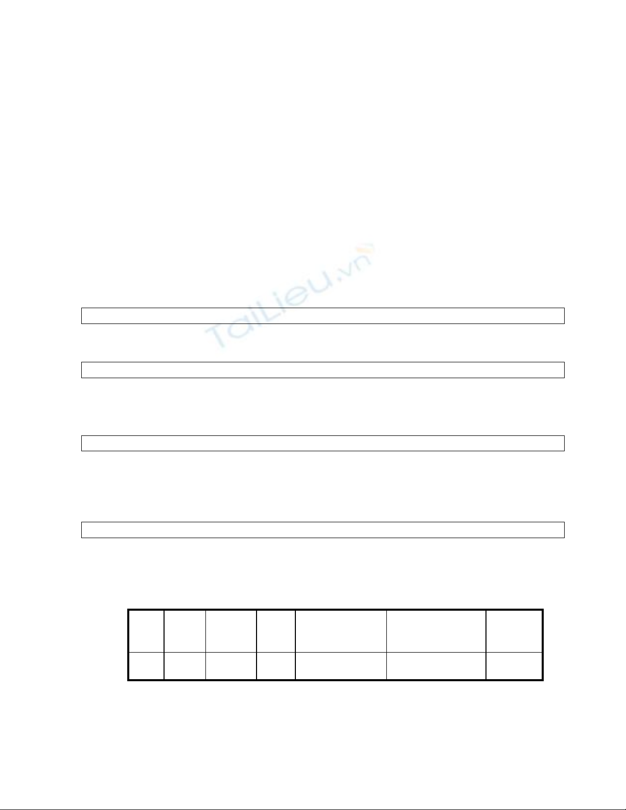 C- Phần tính toán: sinh viên điền trực tiếp vào đề thi (6 điểm)