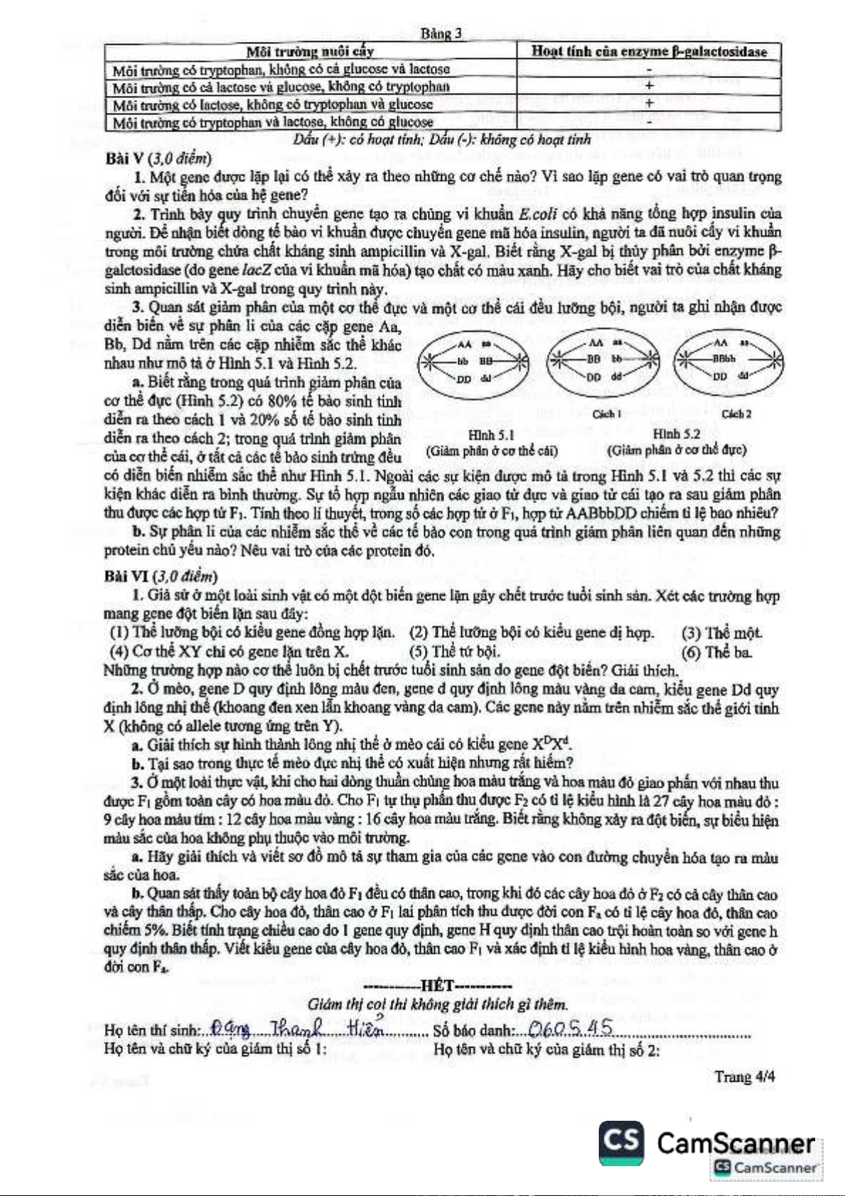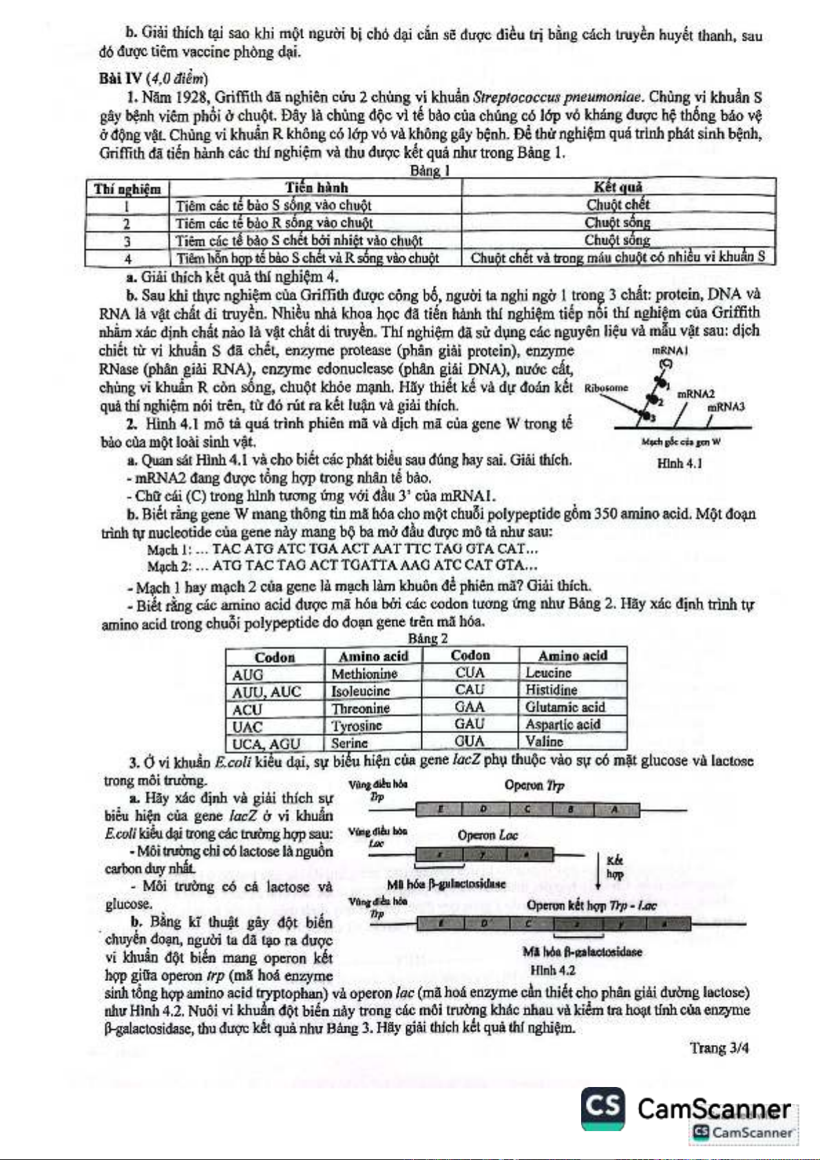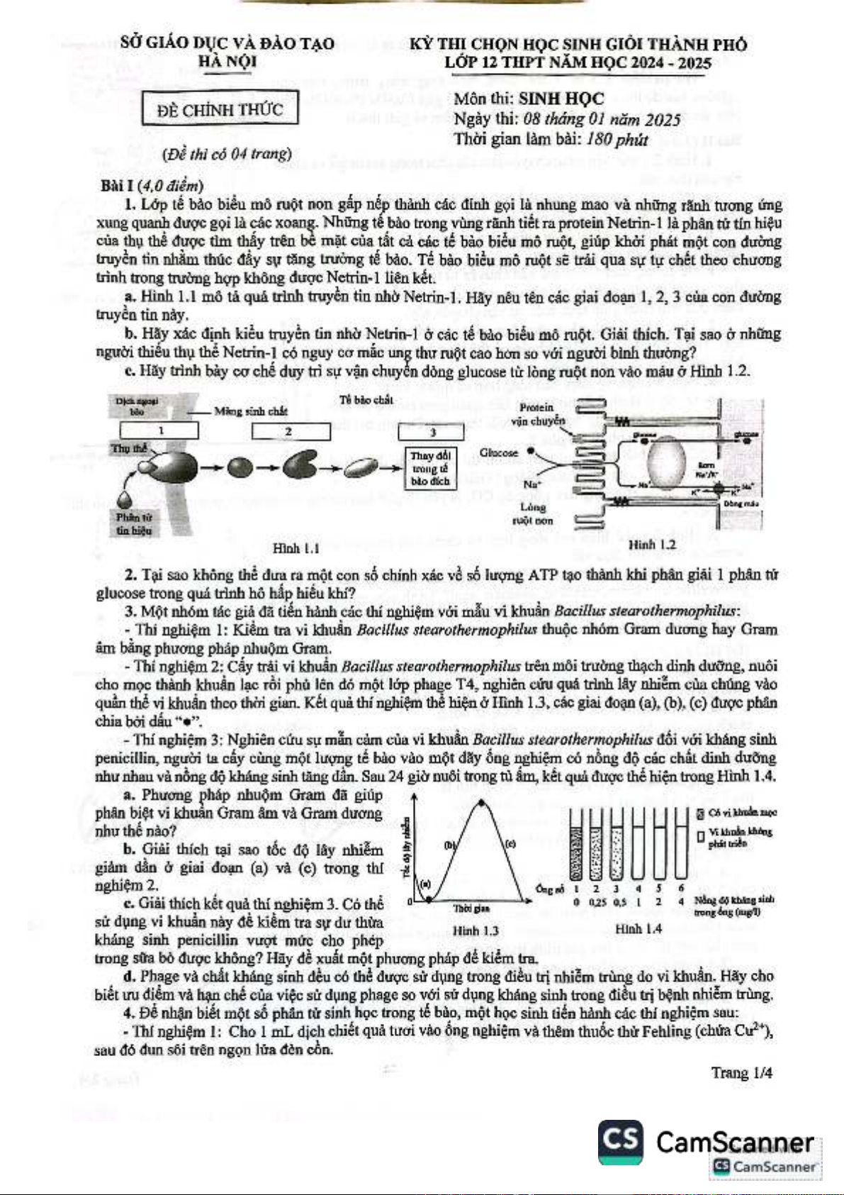 Tài liệu này là một bài kiểm tra sinh học toàn diện, đánh giá kiến thức chuyên sâu và khả năng phân tích của học sinh trên nhiều lĩnh vực cốt lõi. Nội dung bao gồm từ các nguyên tắc cơ bản của sinh học tế bào, với việc phân tích cơ chế tín hiệu tế bào thông qua phân tử Netrin-1 và vận chuyển glucose qua màng, đến các vấn đề phức tạp trong vi sinh vật học. Cụ thể, tài liệu khám phá các đặc điểm của vi khuẩn Bacillus stearothermophilus, bao gồm phương pháp nhuộm Gram, động học lây nhiễm của phage và mức độ nhạy cảm với kháng sinh penicillin, từ đó làm nổi bật tầm quan trọng của chiến lược phage trị liệu so với kháng sinh truyền thống. Phần sinh học phân tử đi sâu vào điều hòa biểu hiện gen, điển hình là operon Lac ở E.coli, và các quá trình phiên mã, dịch mã phức tạp, đòi hỏi sự hiểu biết về mã di truyền và chuỗi polypeptide. Bên cạnh đó, các vấn đề về di truyền học và tiến hóa hệ gen cũng được đề cập rộng rãi, bao gồm cơ chế lặp gen, tầm quan trọng của nó đối với sự phát triển của hệ gen, và các ứng dụng trong công nghệ gen như tạo chủng E.coli sản xuất insulin người. Tài liệu cũng kiểm tra sự hiểu biết về các quy luật giảm phân, di truyền liên kết giới tính, và các dạng tương tác gen phức tạp qua các ví dụ về màu lông mèo và màu sắc hoa ở thực vật. Phương pháp tiếp cận chủ yếu dựa trên việc phân tích và giải thích các kết quả thực nghiệm sinh học, đòi hỏi học sinh không chỉ có kiến thức lý thuyết vững chắc mà còn phải có khả năng áp dụng để giải quyết các tình huống thực tế và suy luận khoa học. Những kiến thức này không chỉ có ý nghĩa học thuật mà còn là nền tảng cho nhiều ứng dụng trong y học, công nghệ sinh học và nghiên cứu khoa học sự sống.