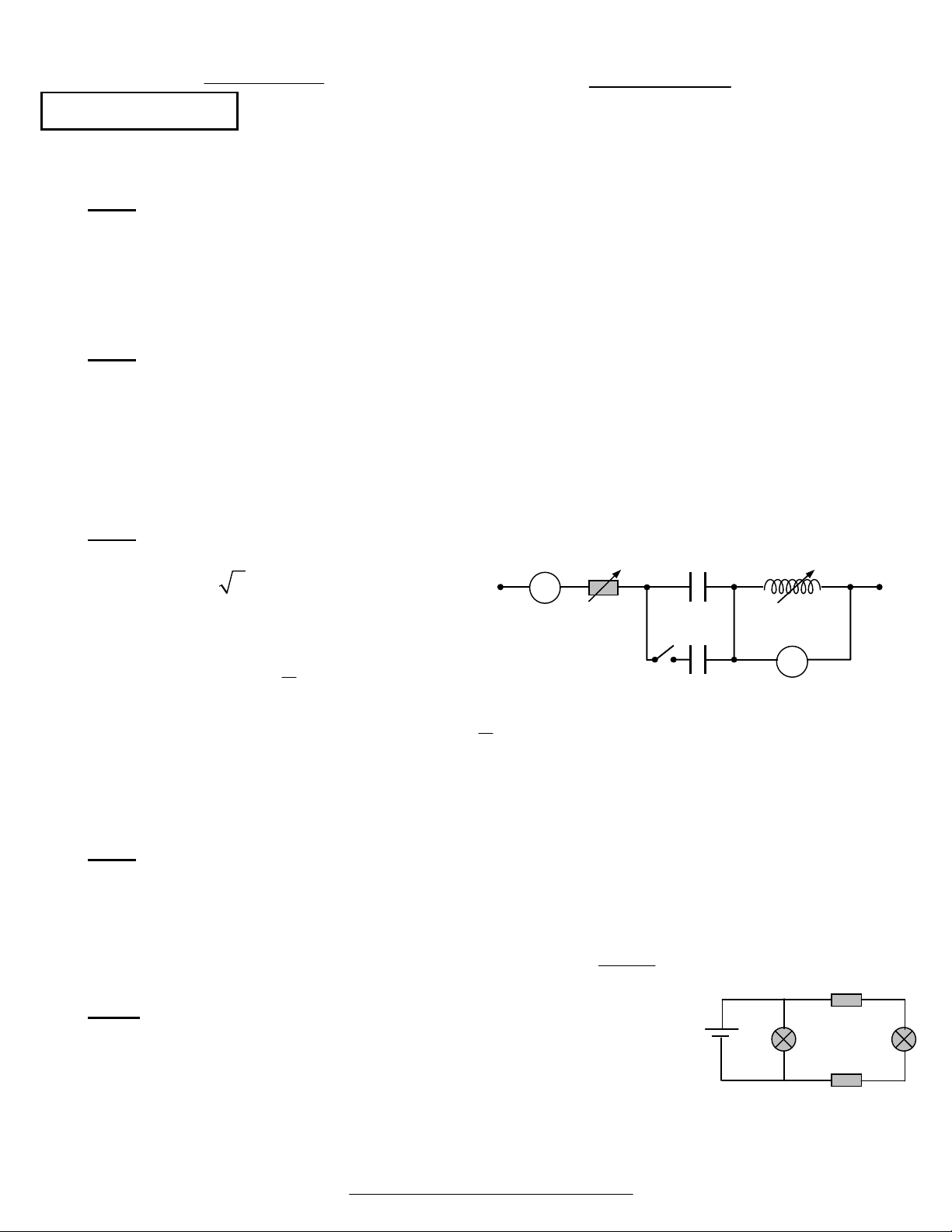 1. Để cho hệ số công suất của toàn mạch bằng 1 thì R1, R2, L, C và phải thoả mãn hệ thức