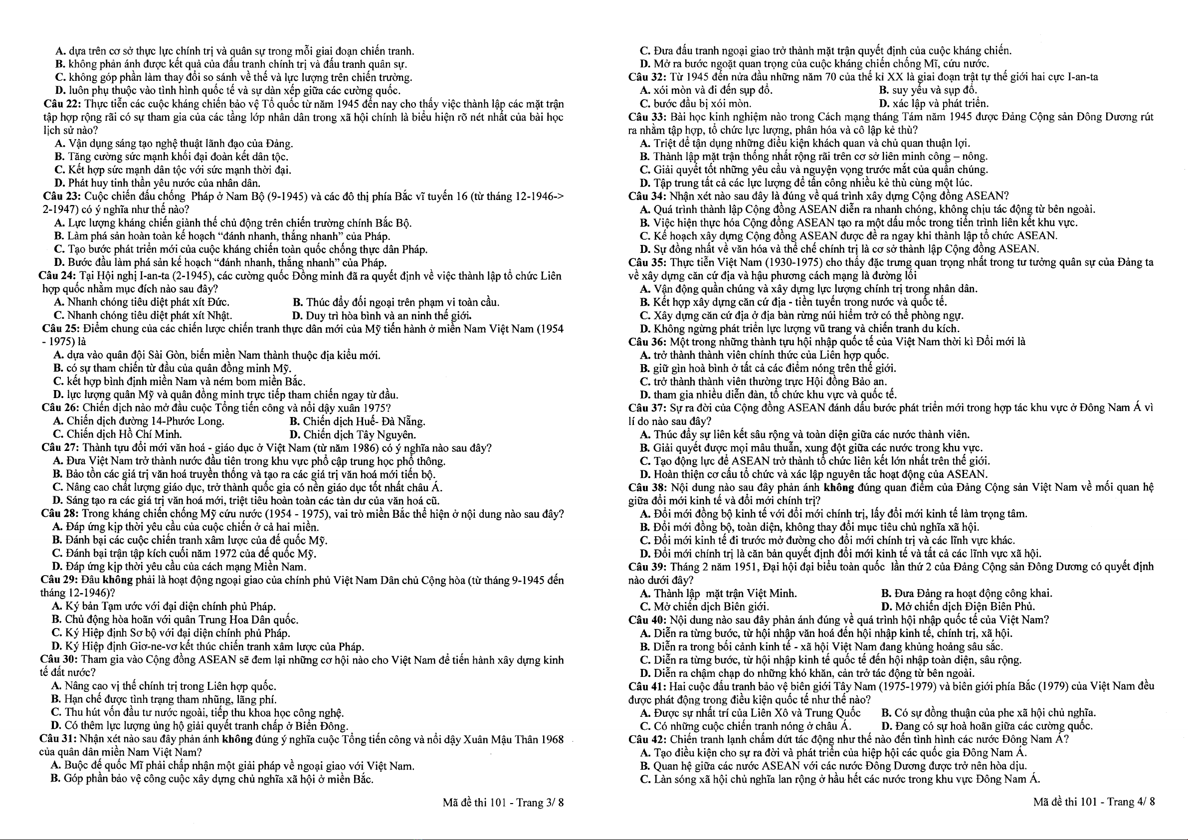 Đề thi học sinh giỏi cấp tỉnh môn Lịch sử lớp 12 năm 2024-2025 - Sở GD&ĐT Bà Rịa - Vũng Tàu là một công cụ hữu ích cho các em hệ thống kiến thức về Lịch sử. Nó chủ yếu tập trung vào các chuyên đề quan trọng như Việt Nam đại dịch, Châu Âu trong thời kỳ lịch sử 20th century, Quốc gia Hoa Kỳ, Hoàn thành chế độ công chúng ở Việt Nam và nhiều chủ đề khác. Mỗi câu hỏi trong đề thi là một câu hỏi đơn giản hay nặng khó, tốt nghiệp có thể xem lại và chọn trả lời phù hợp. Ngoài ra, đề thi cũng cho phép em học viên làm quen với kiểu dịch và cấu trúc của kì thi chính thức.