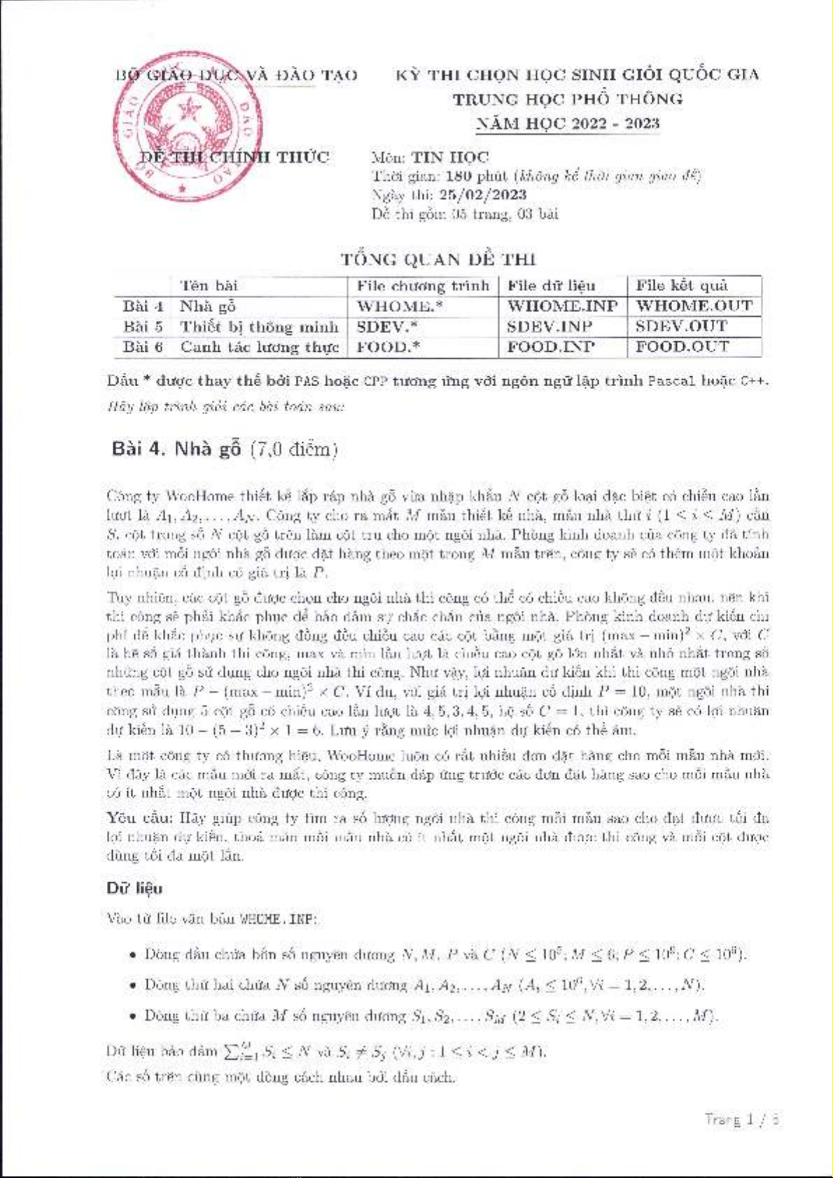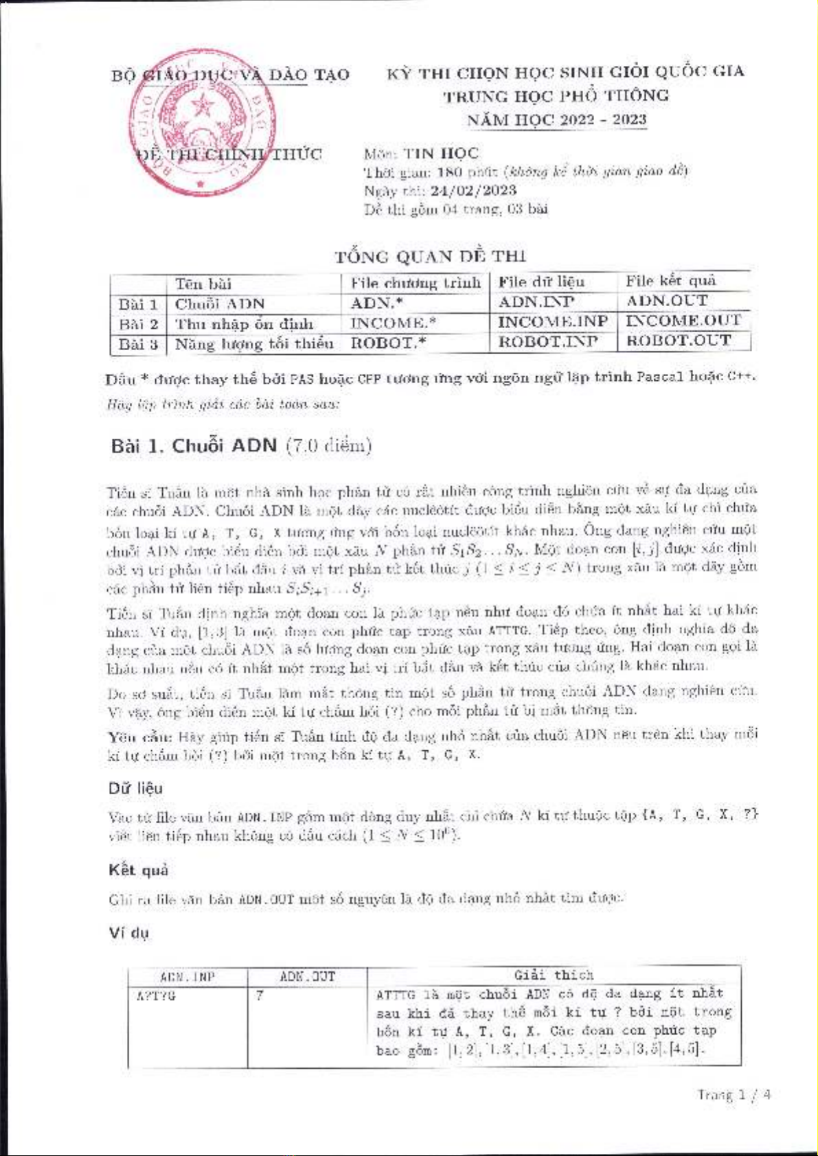 Đề thi chọn học sinh giỏi Quốc gia môn Tin học năm 2022-2023 có đáp án - Bộ GD&ĐT