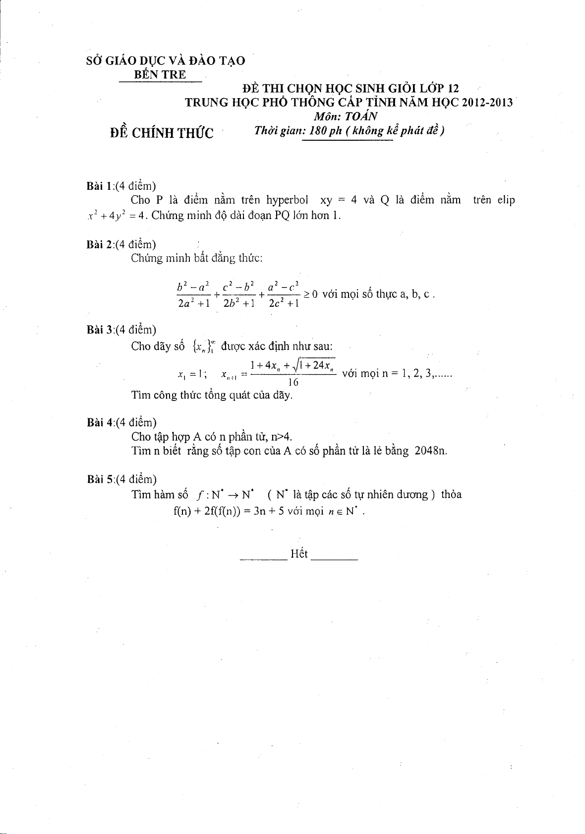 §Ò thi chän häc sinh giái líp 12