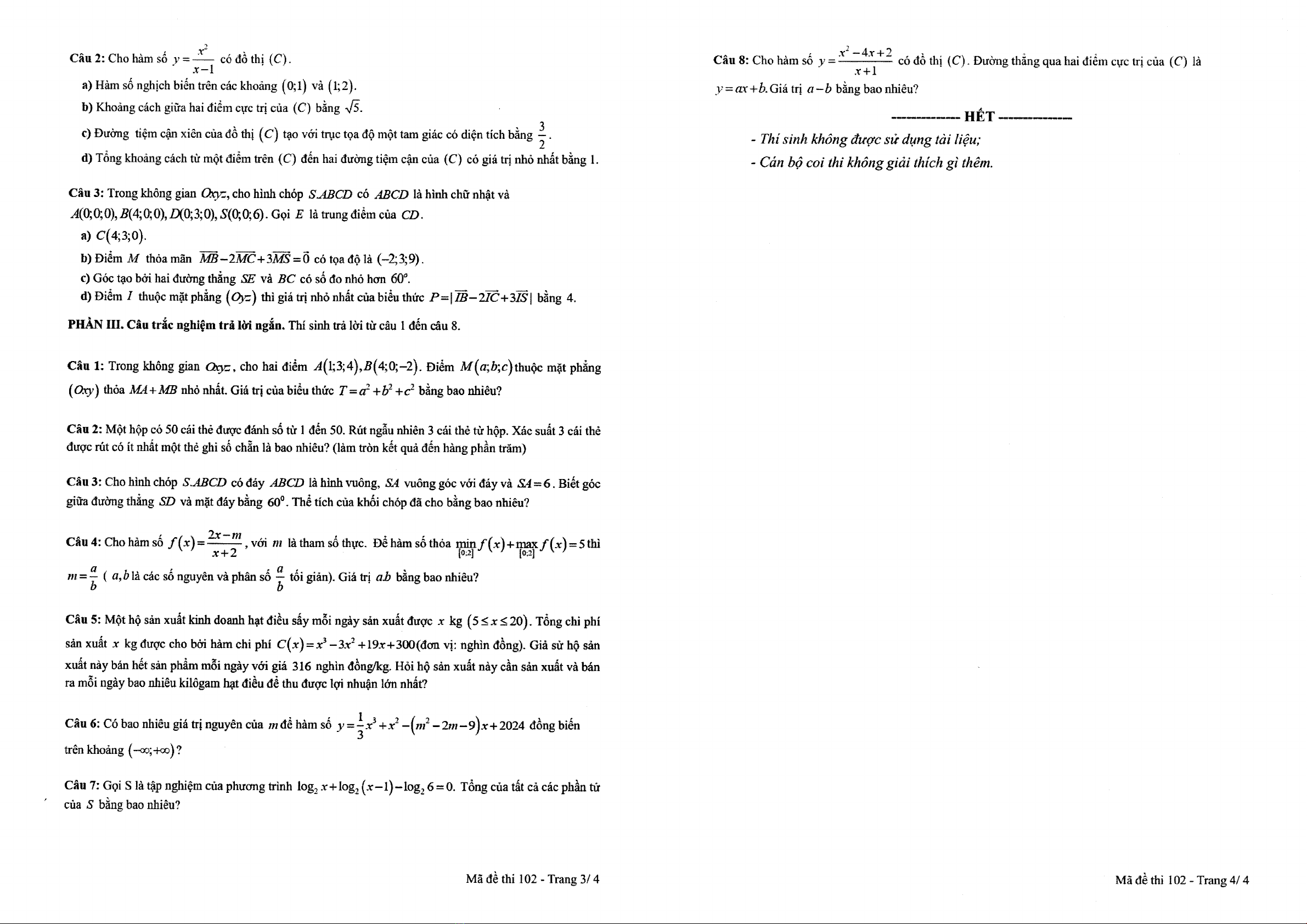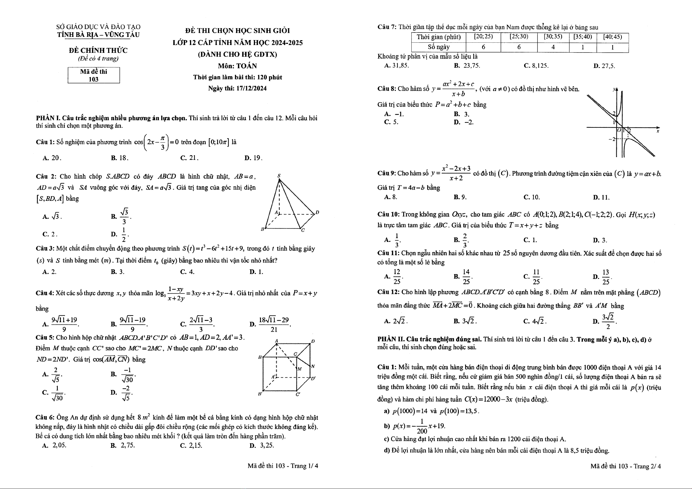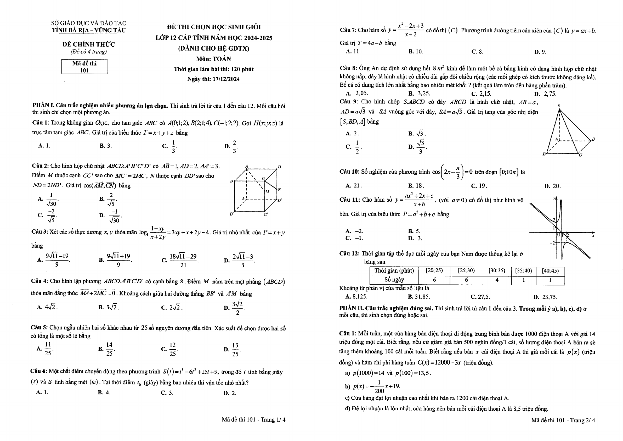 Tài liệu đề thi học sinh giỏi cấp tỉnh môn Toán lớp 12 năm 2024-2025 do Sở GD&ĐT Bà Rịa - Vũng Tàu (GDTX) phát hành là một cuốn tài liệu dạy dủ cho các em học sinh lớp 12, chỉ rõ các vấn đề toán mà học sinh sẽ gặp trong kì thi. Tài liệu có thời gian làm bài là [insert time here] phút, với hệ thống điểm và thang điểm [insert grading system here]. Mục đích chính của tài liệu này là giúp học sinh lớp 12 rèn luyện kỹ năng giải quyết vấn đề toán, phát triển tư duy logic và suy nghĩ phê phán. Trong tài liệu, các em sẽ gặp một loạt các vấn đề toán phức tạp kèm theo giải thuyết để học sinh có thể rèn luyện tư duy logic và suy nghĩ phê phán. Các em cần phải đánh giá năng lực làm bài của mình, chuẩn bị cho kì thi tốt hơn.