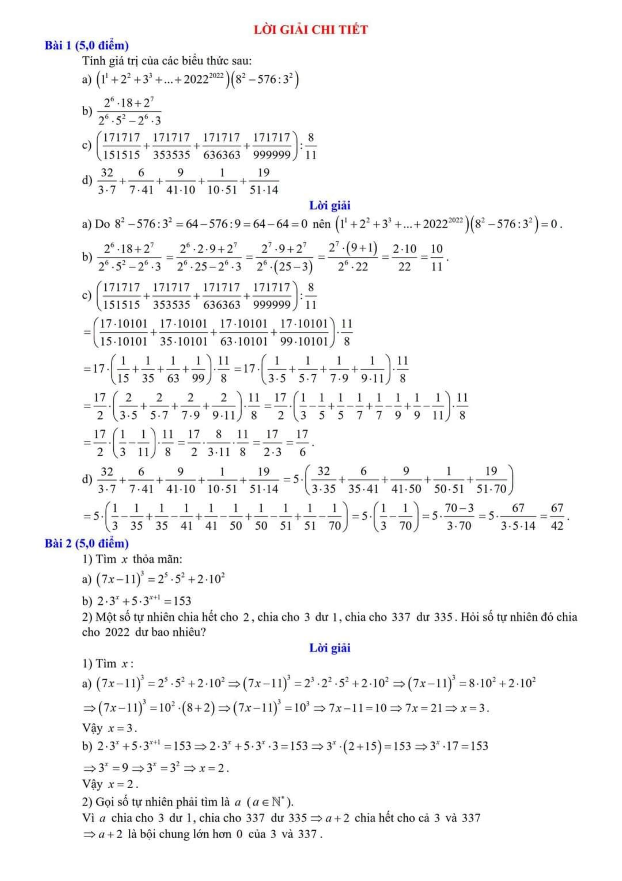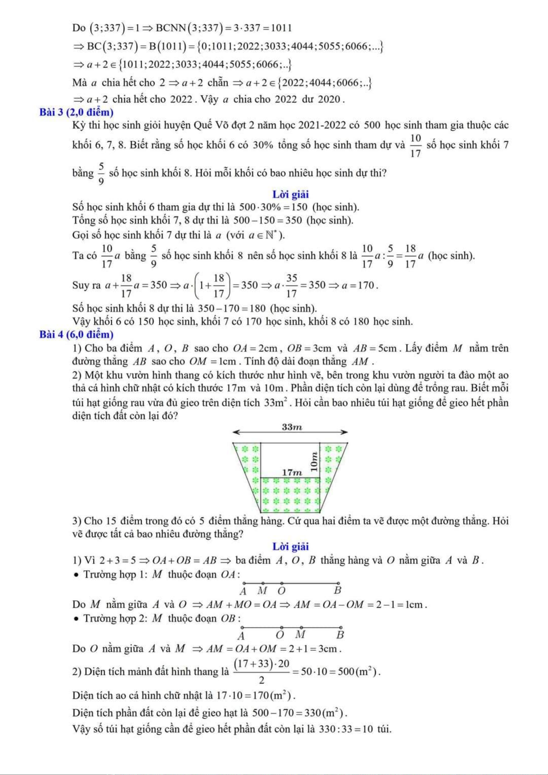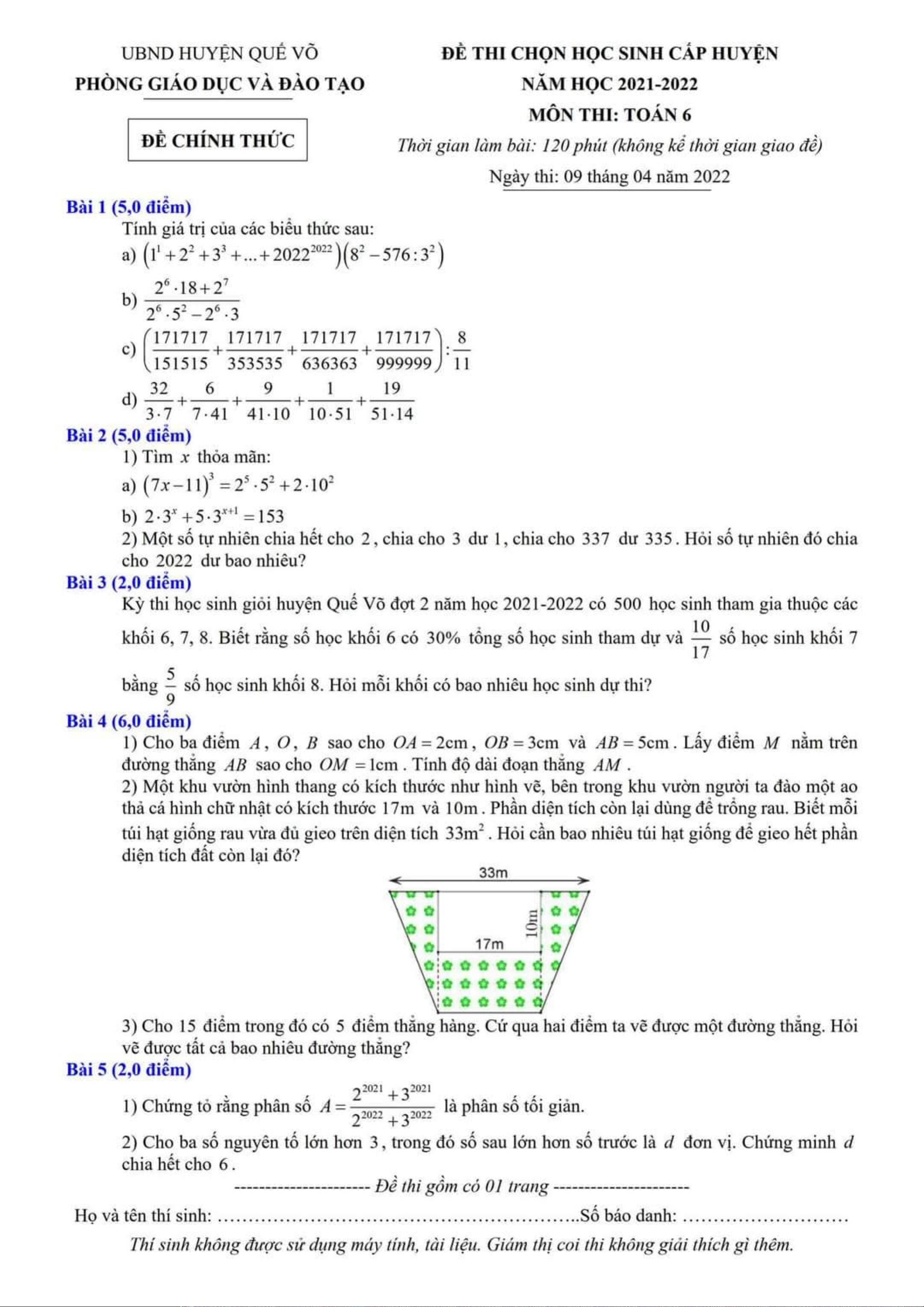Đề thi chọn học sinh giỏi huyện môn Toán lớp 6 năm 2021-2022 có đáp án - Phòng GD&ĐT Quế Võ