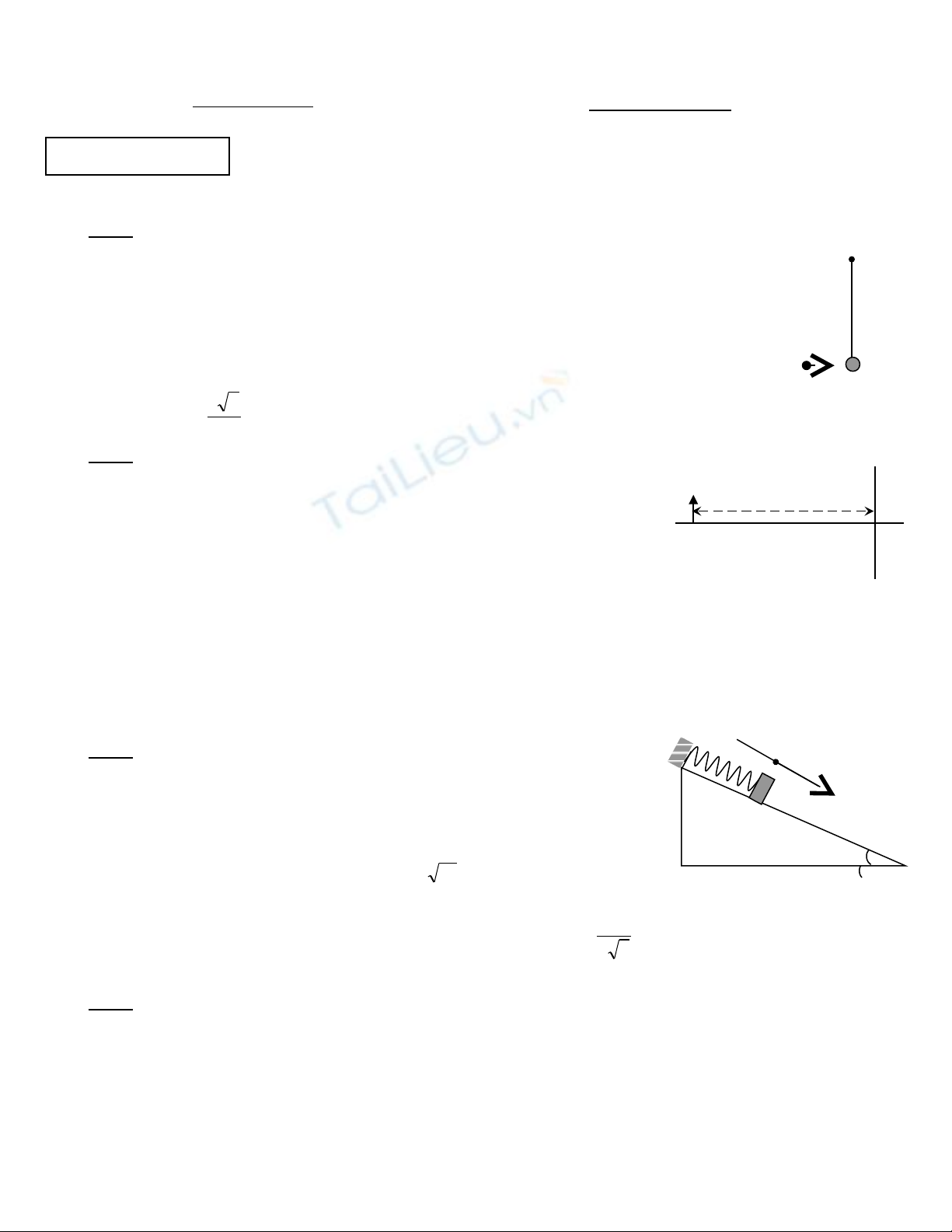 M t v t nh kh i l ng M =100g treo vào đu s i dây lí t ng, chi uộ ậ ỏ ố ượ ầ ợ ưở ề