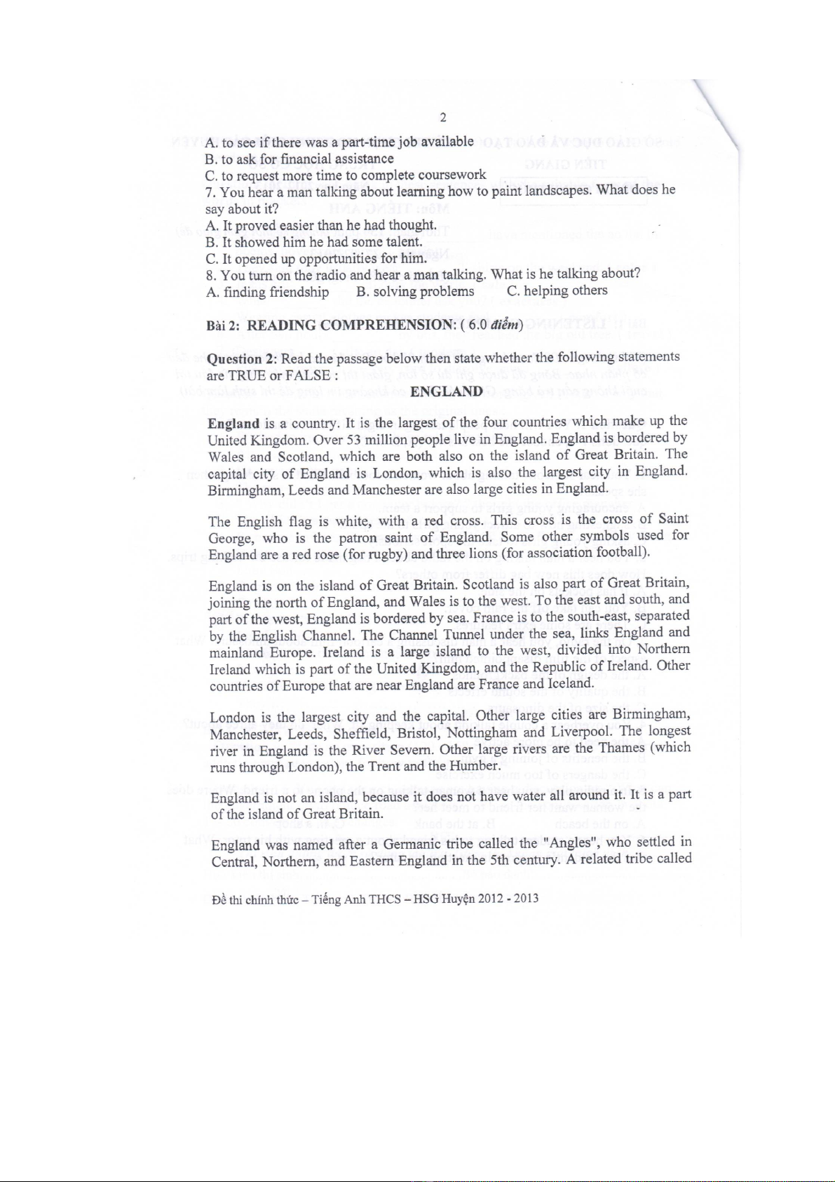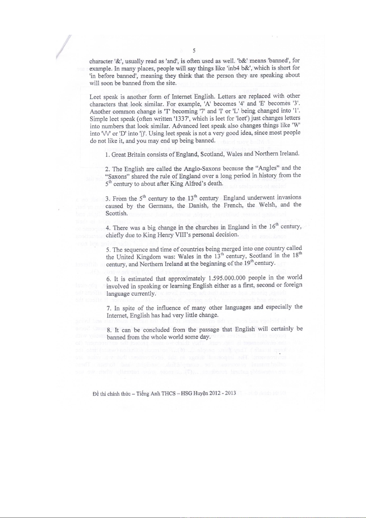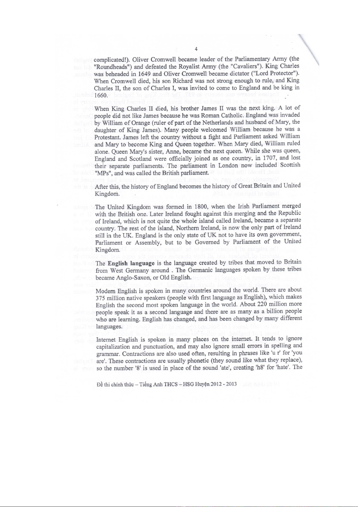 Đề thi HSG Tiếng Anh 9 cấp huyện - Sở GD&ĐT Tiền Giang (2012-2013)