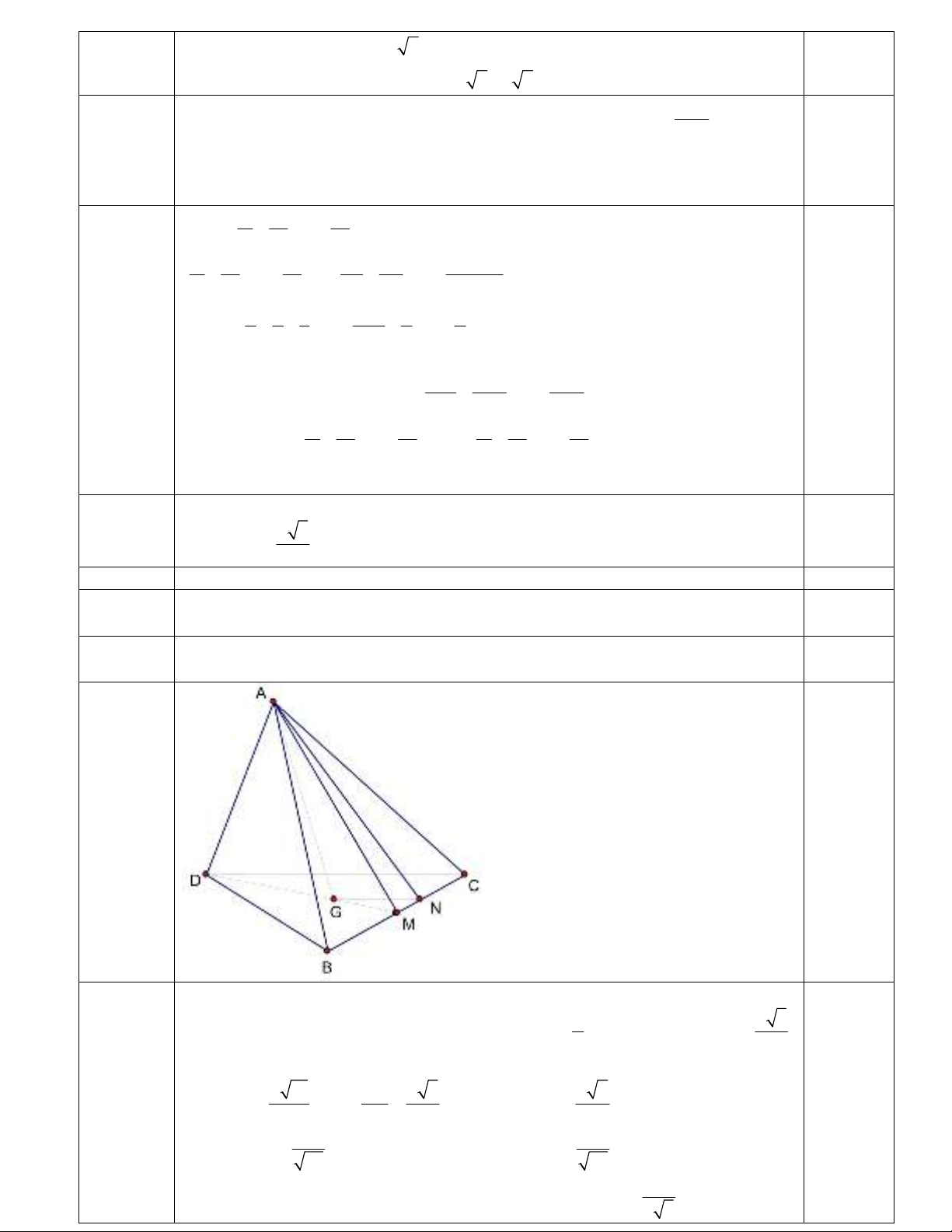 2. (2đ) Gọi G là trọng tâm tam giác BCD, tính cosin góc giữa hai đường thẳng AG và