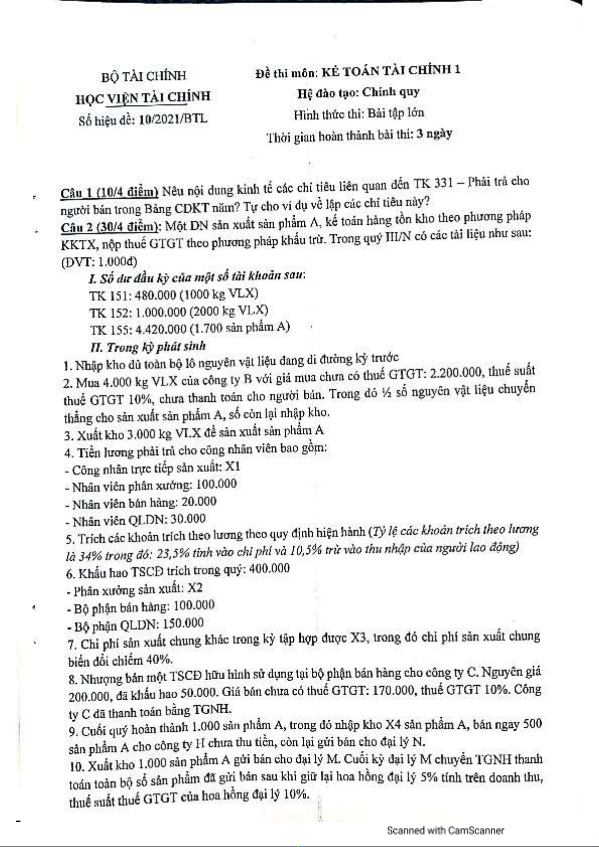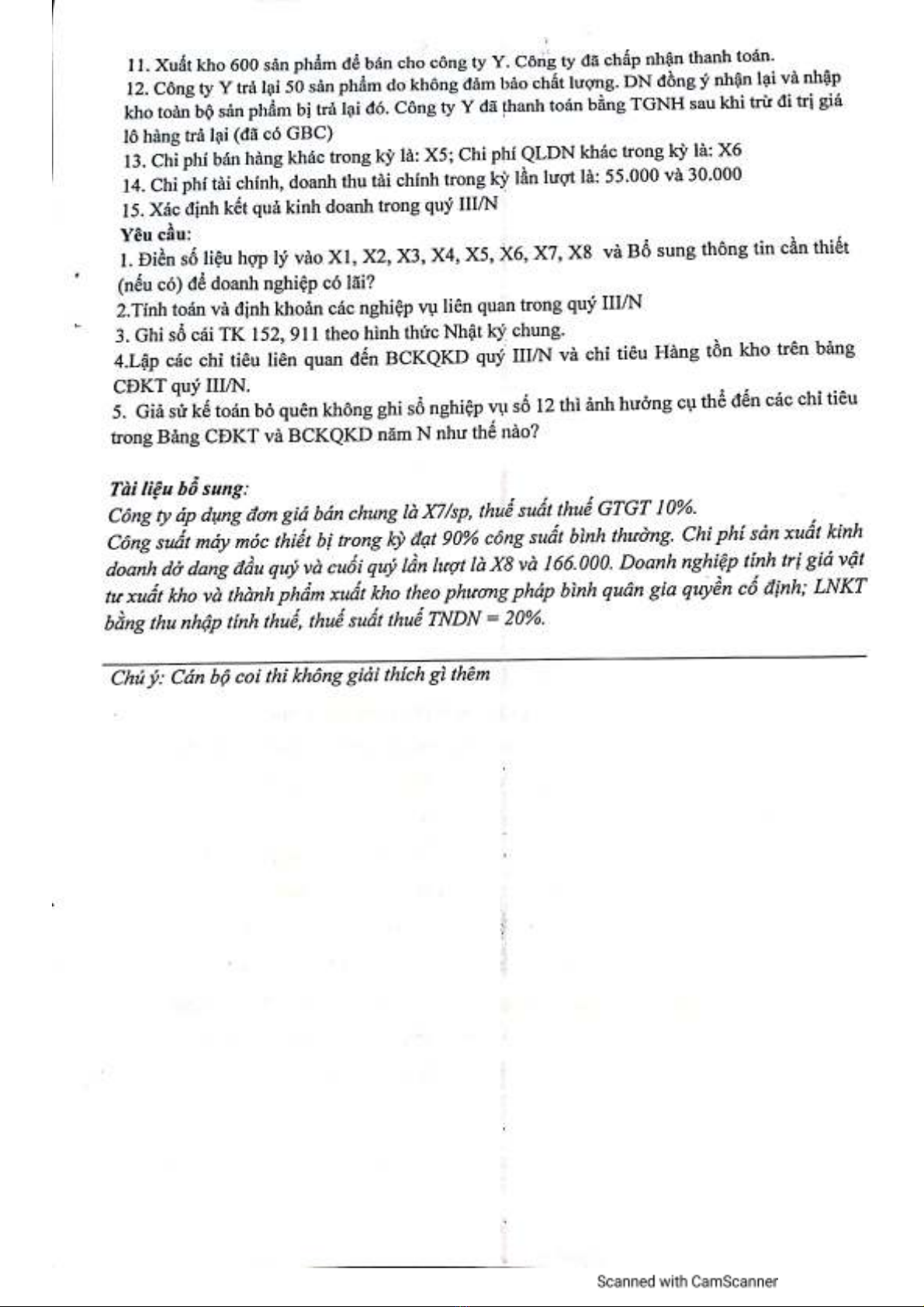 Xuất kho 3.00kg nguyên vật liệu X phục vụ sản xuất theo phiếu xuất kho số 01(PXK 01)