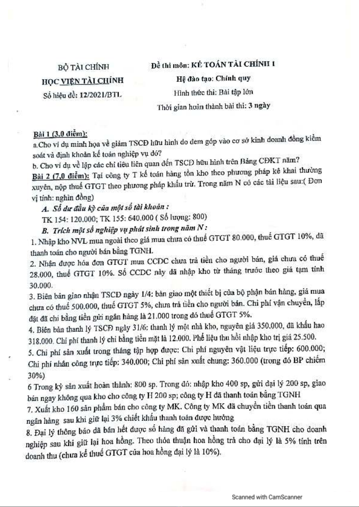 - NV4: Thanh lý 1 nhà kho, thời gian sử dụng hữu ích 5 năm, phiếu liệu thu