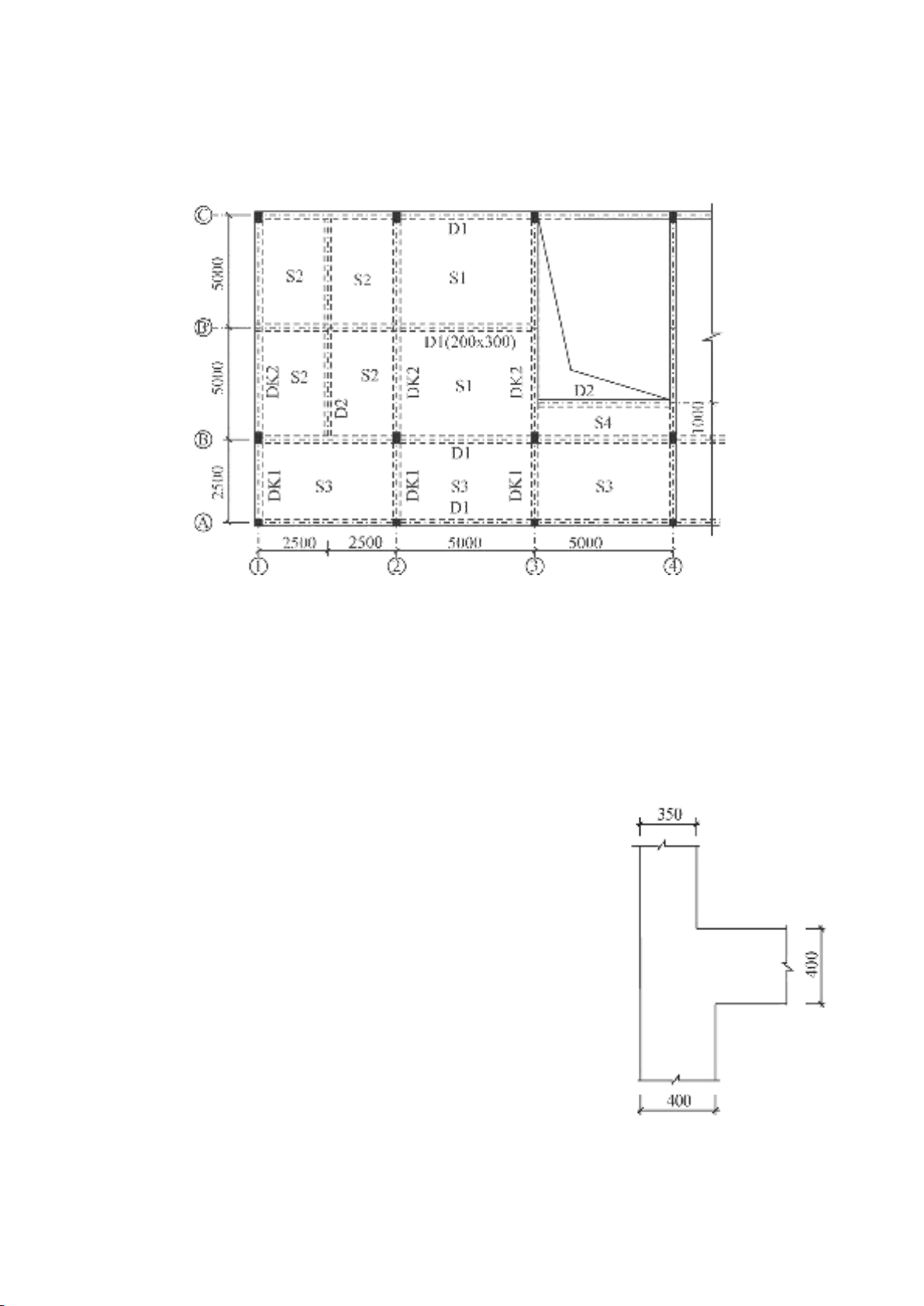 Hình 1. Một phần mặt bằng sàn (câu hỏi 1 và câu hỏi 2)