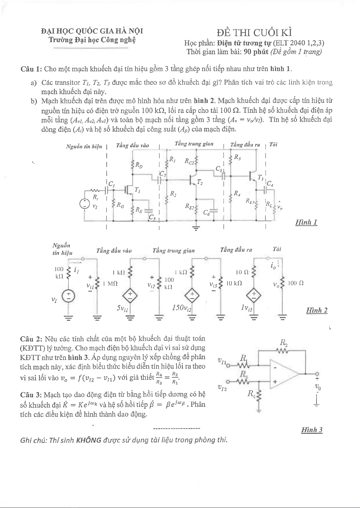 Để giúp các bạn sinh viên củng cố lại phần kiến thức đã học, nắm bắt được cấu trúc đề thi và thử sức mình khi thực hiện thử các bài thi. Mời các bạn cùng tham khảo đề thi kết thúc học kỳ I năm học 2019-2020 môn Điện và từ dưới đây để có thêm tài liệu ôn thi.