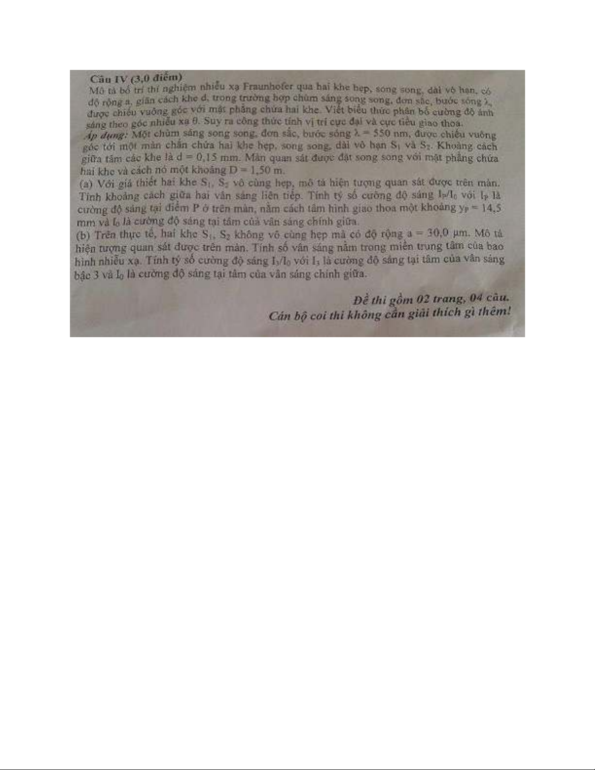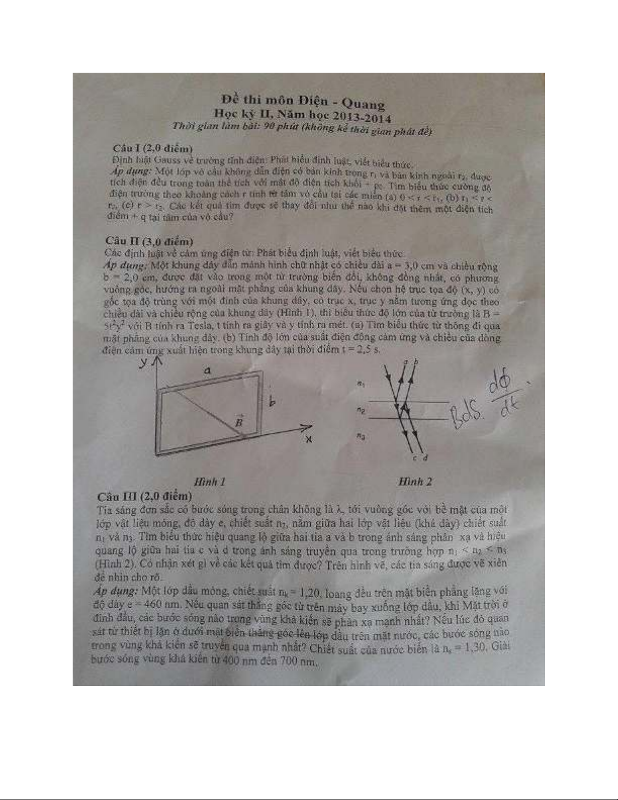 Đề thi kết thúc học kỳ II năm học 2013-2014 môn Điện quang - ĐH Khoa học Tự nhiên