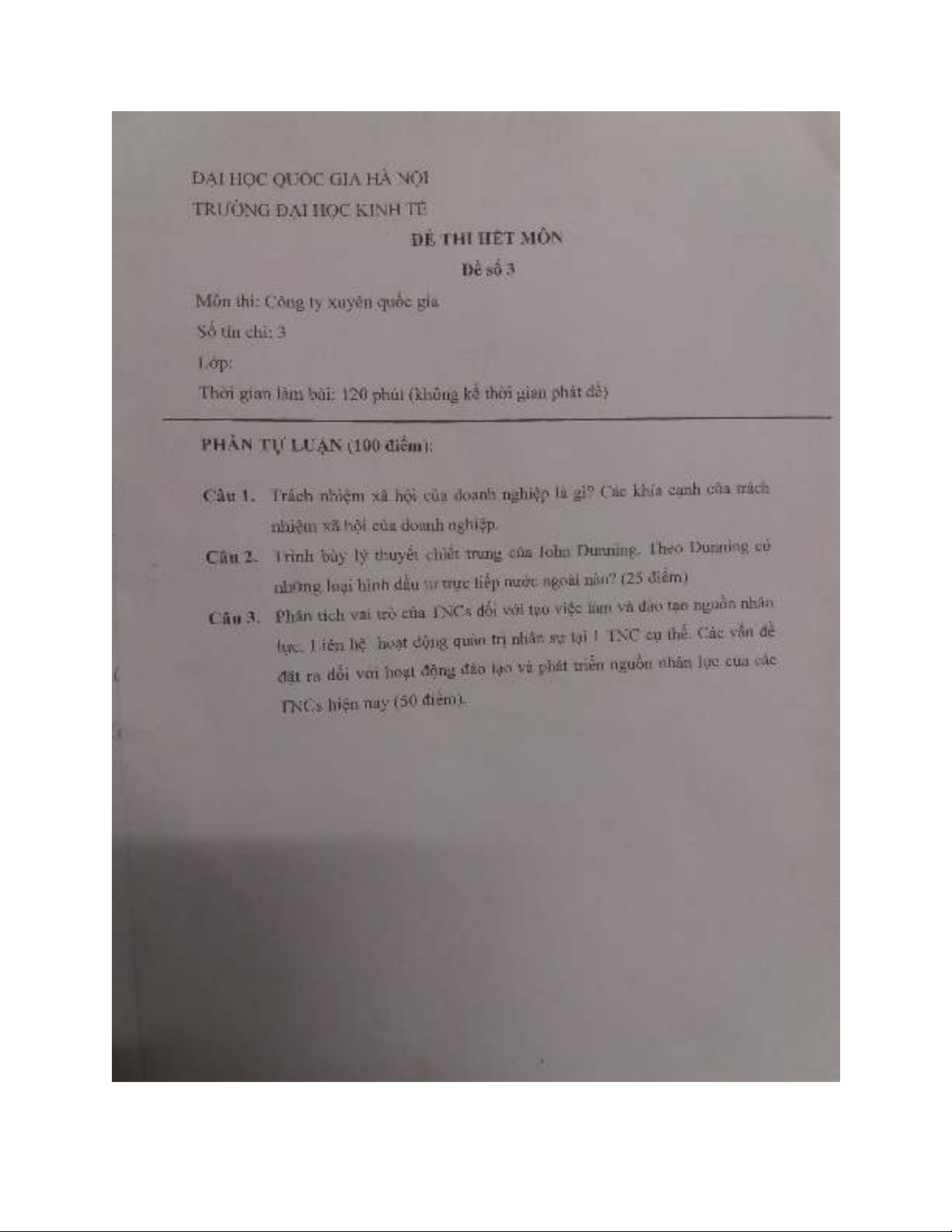 Đề thi kết thúc học kỳ I năm học 2018-2019 môn Công ty xuyên quốc gia - Đại học Kinh tế