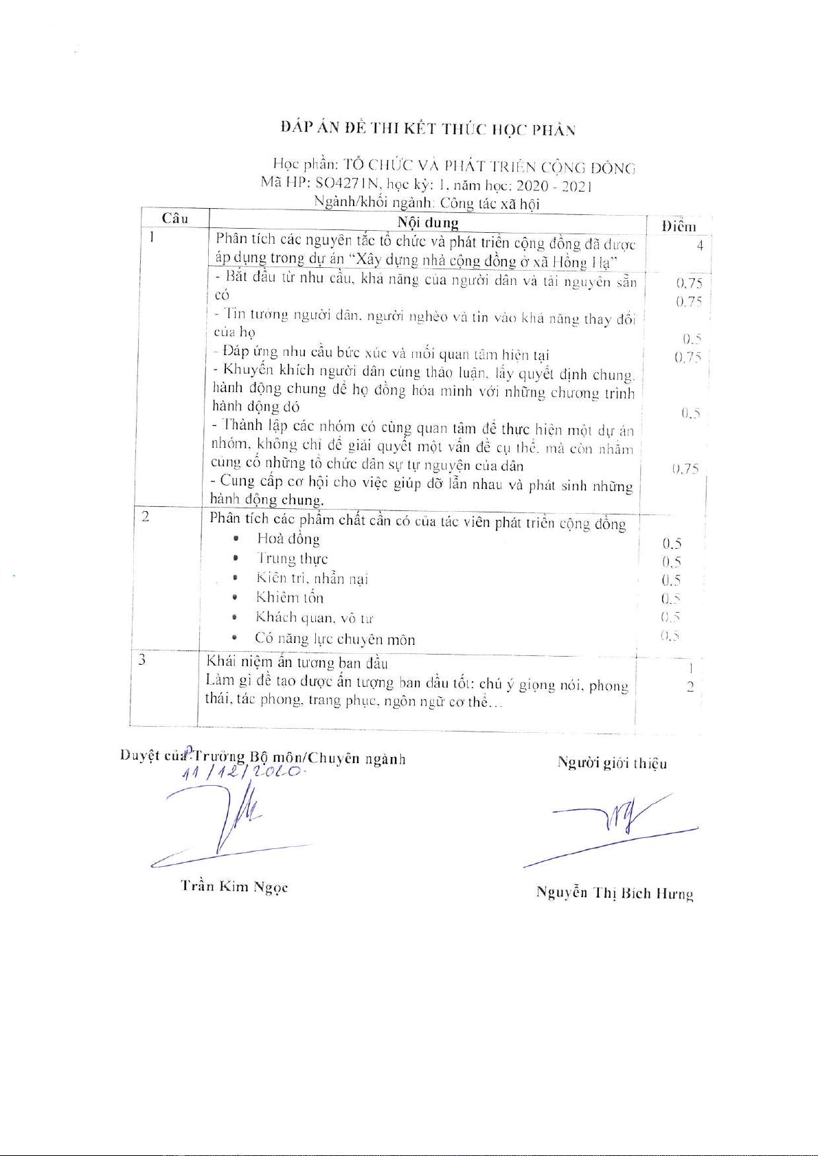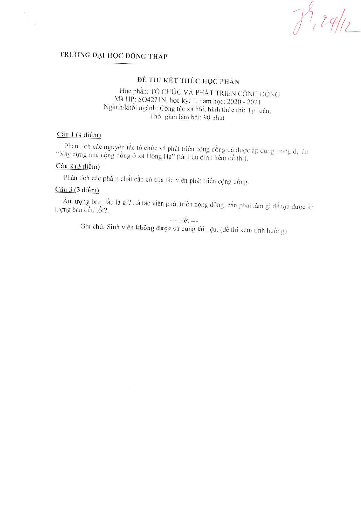 Đề thi kết thúc học phần học kì 1 môn Tổ chức phát triển cộng đồng năm 2020-2021 có đáp án - Trường ĐH Đồng Tháp