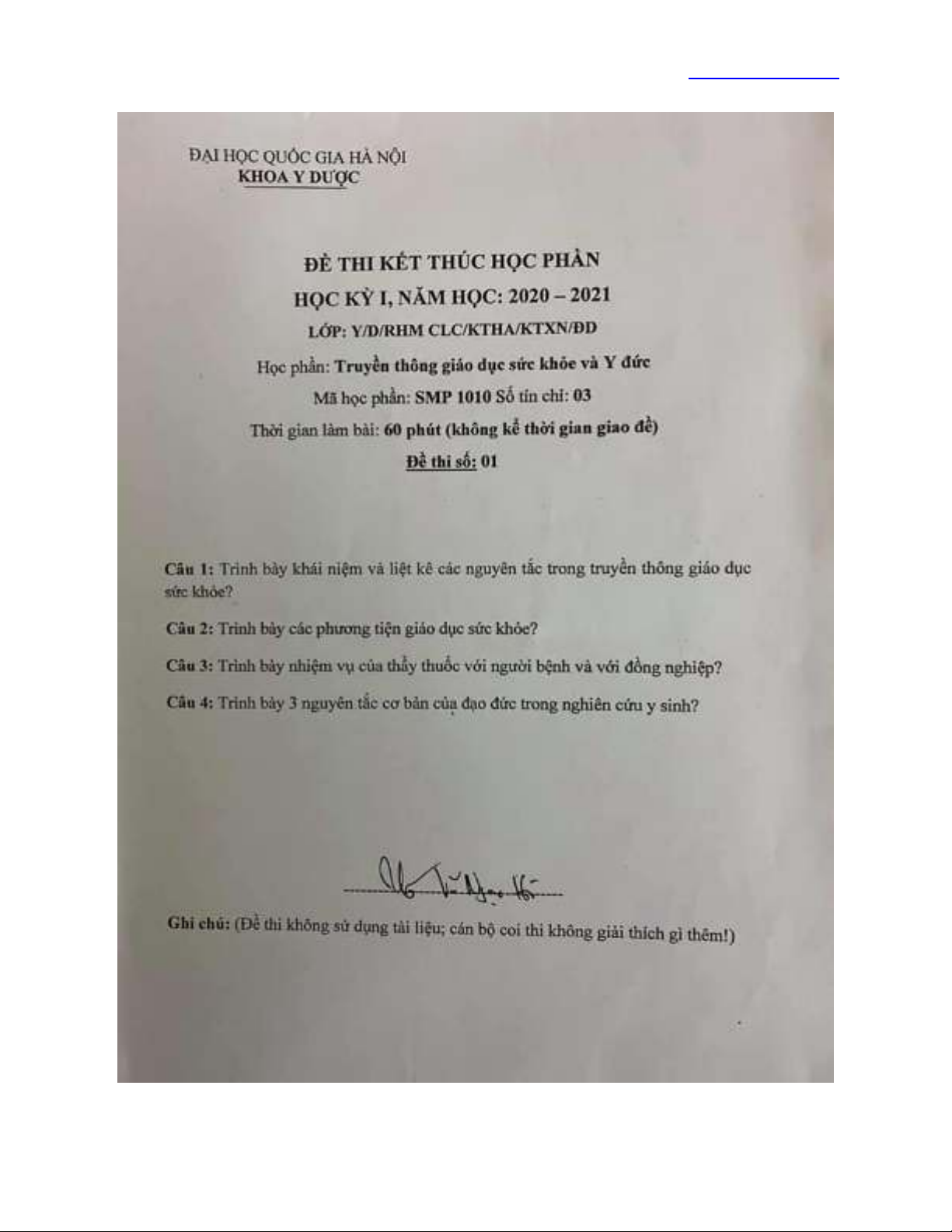 Đề thi kết thúc học kỳ I năm học 2020-2021 môn Truyền thông giáo dục sức khỏe và y đức (Đề số 1) - ĐH Y dược
