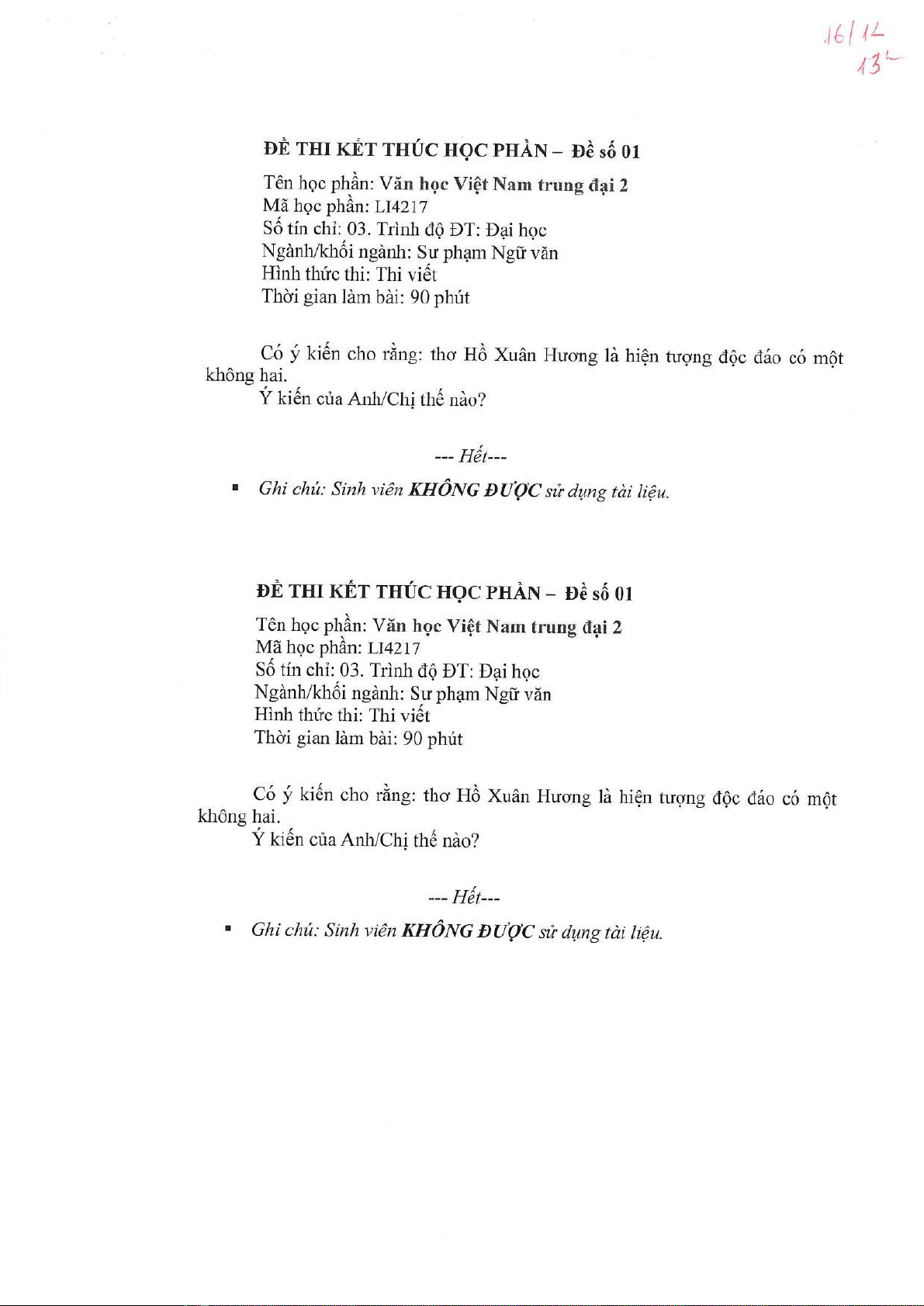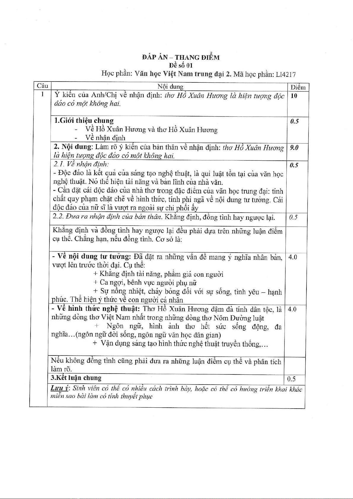 Đề thi kết thúc học phần học kì 1 môn Văn học Việt Nam trung đại 2 năm 2020-2021 có đáp án - Trường ĐH Đồng Tháp