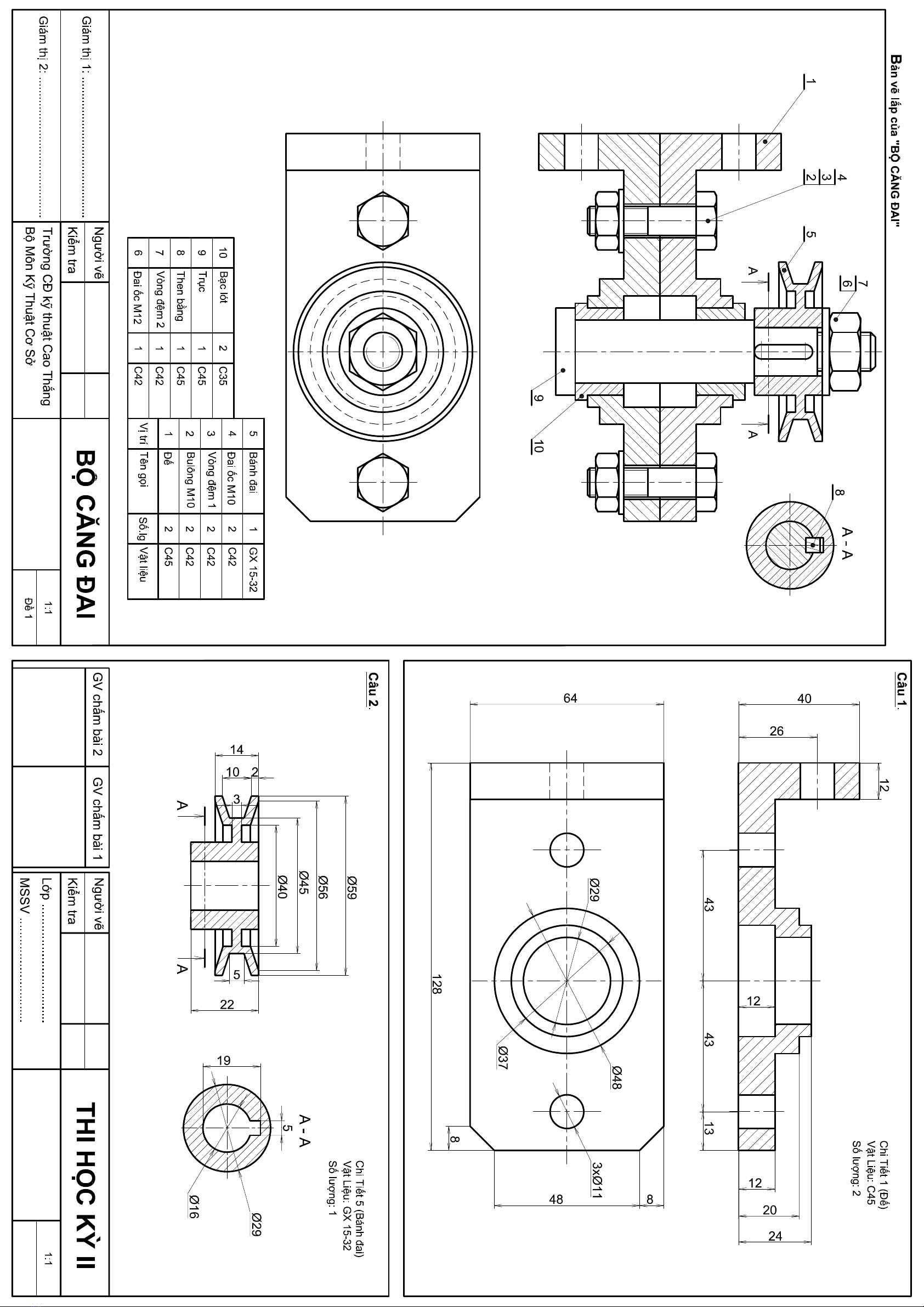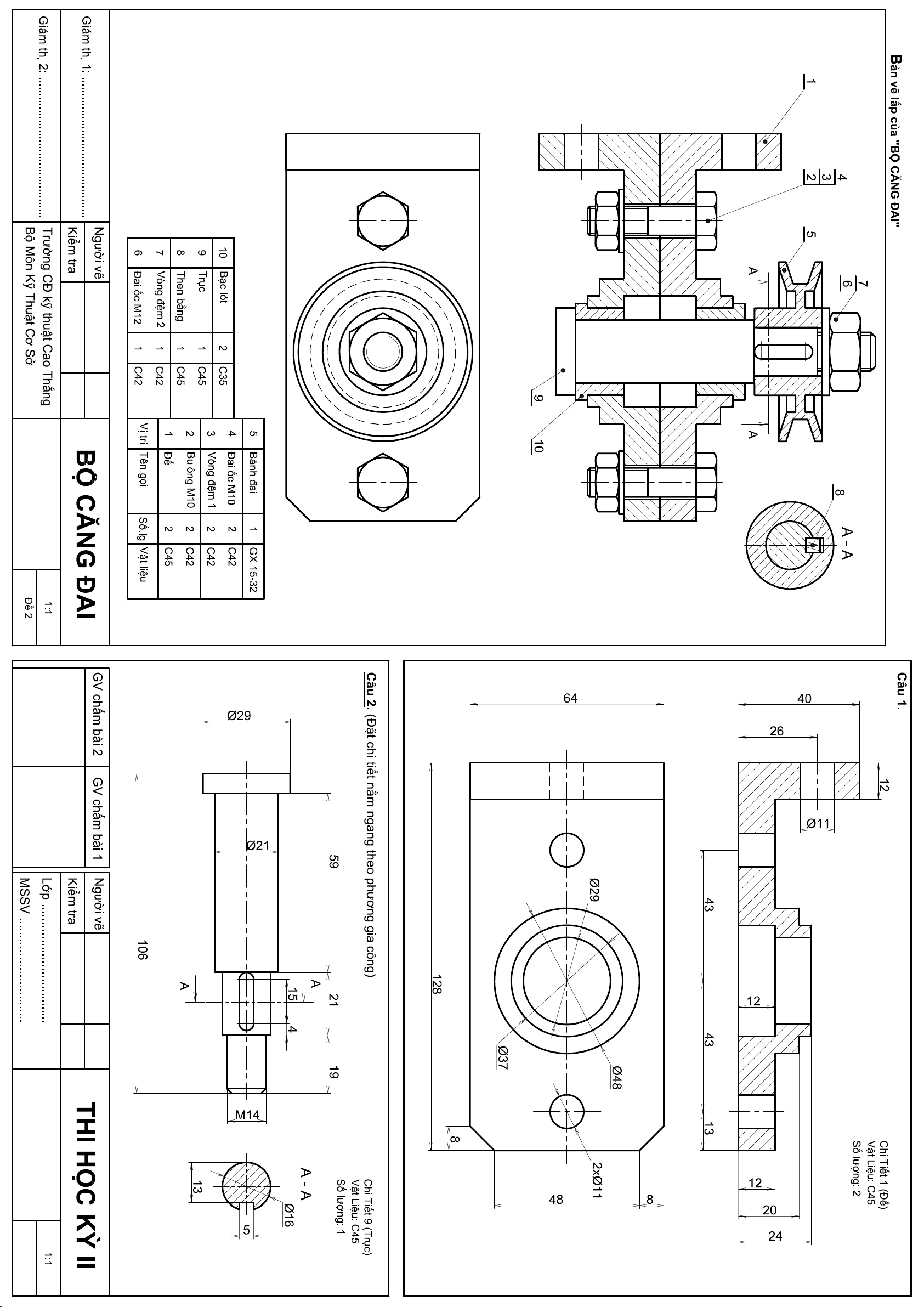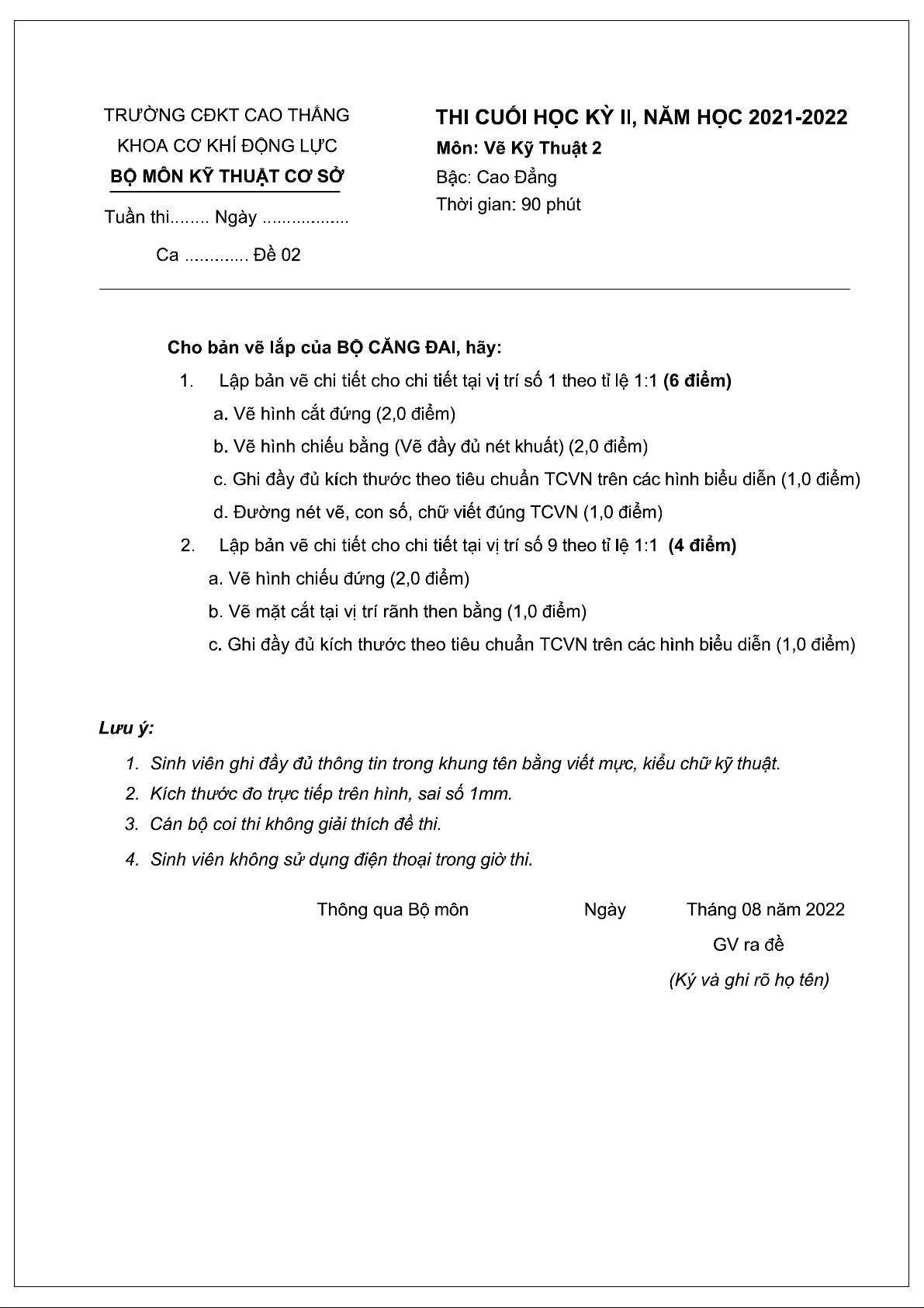 Đề thi kết thúc học phần học kì 2 môn Vẽ kỹ thuật 2 năm 2021-2022 có đáp án - Trường CĐ Kỹ thuật Cao Thắng (Ngành Ô tô)