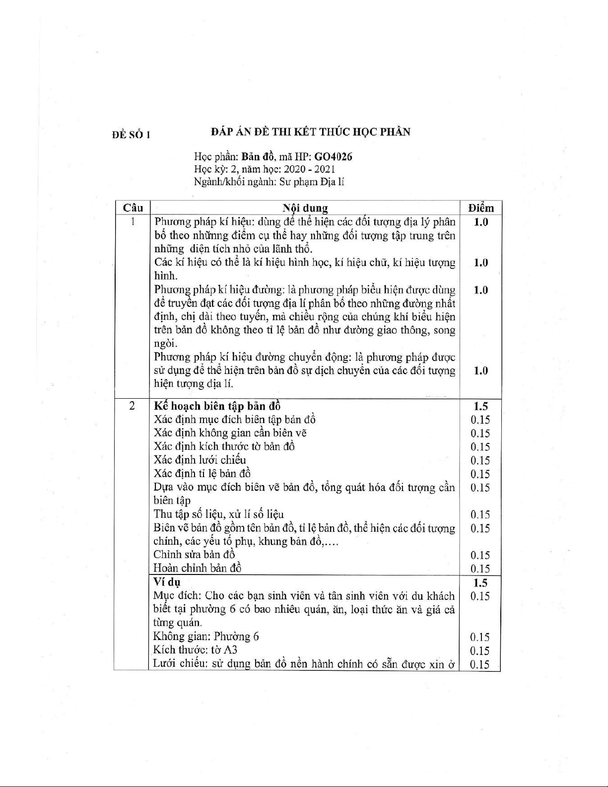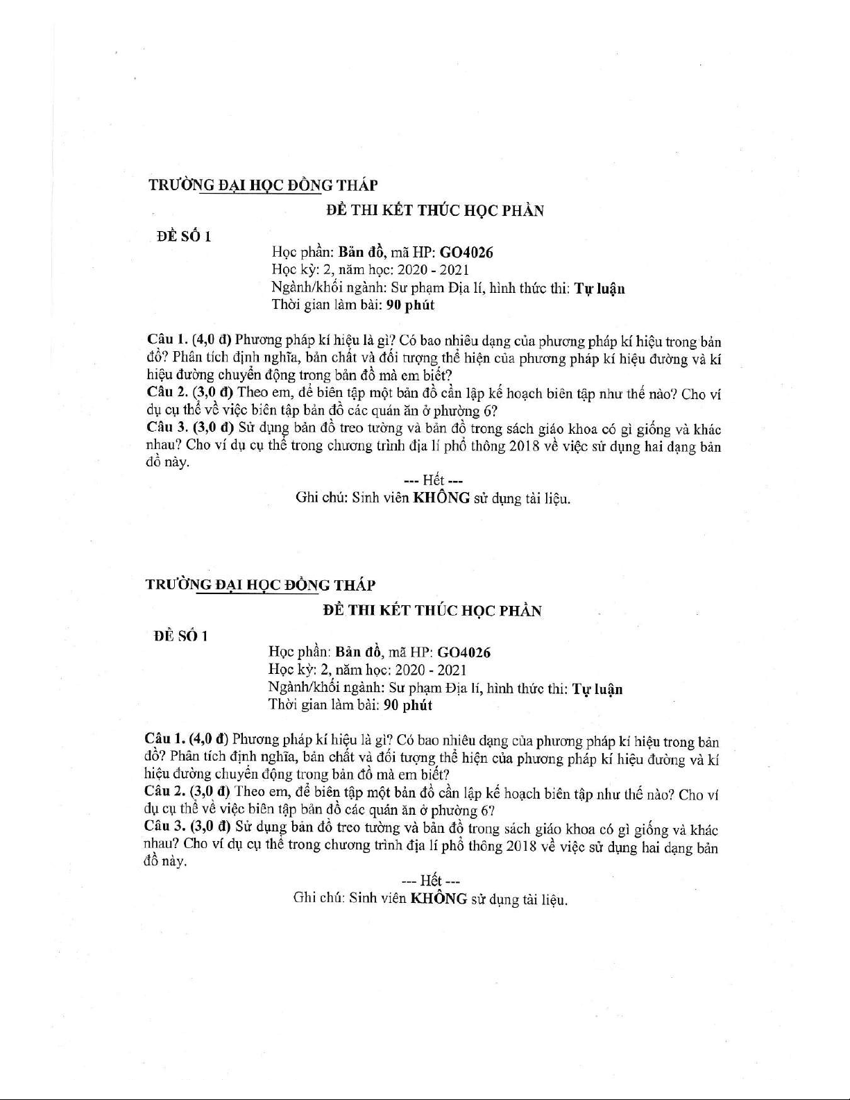 Đề thi kết thúc học phần học kì 2 môn Bản đồ năm 2020-2021 có đáp án - Trường ĐH Đồng Tháp