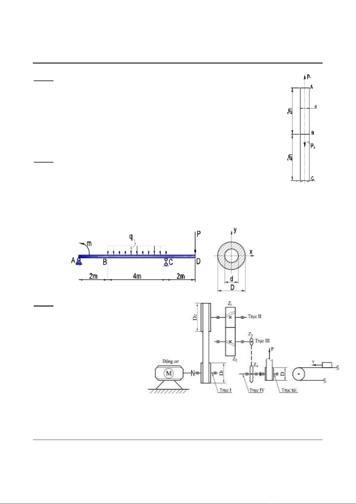 Bài 2: (5đ) Cho dầm thép AD có trọng lượng không đáng kể, chịu uốn ngang
