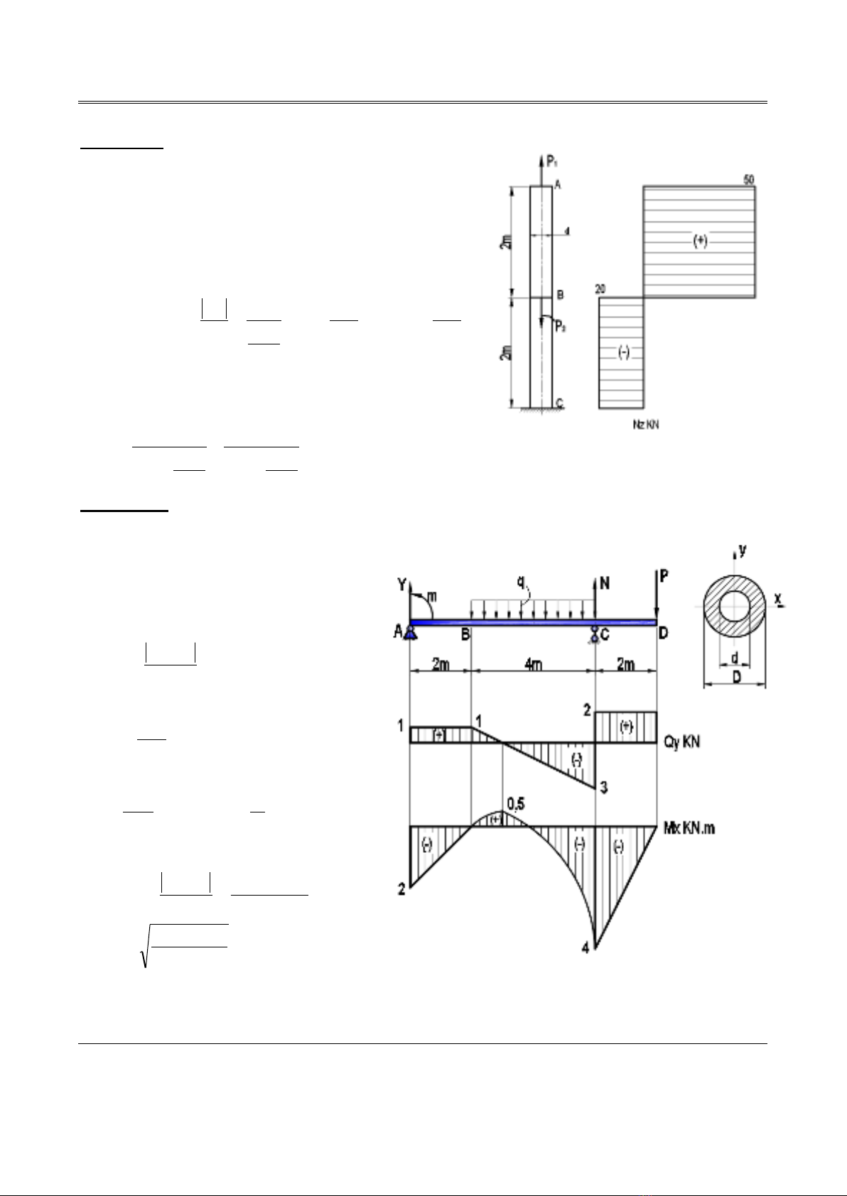 P1=50KN đặt tai A; P2=70KN đặt tại B, thanh có đường kính d=4cm.